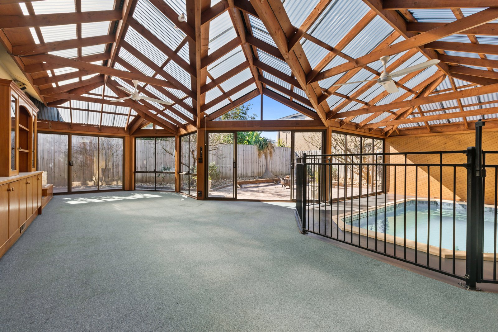 Outdoors, the lifestyle appeal comes to the fore. A vast covered entertaining area, stretching 10 metres by 4 metres (approx.), overlooks the swim spa and pool, providing a wonderful setting for barbecues, celebrations, and relaxed summer living. The expansive backyard and front garden offer plenty of space for children to play, while a secure garage of 5.2 metres by 8.6 metres (approx.), tandem carport, and garden shed add both storage and peace of mind.