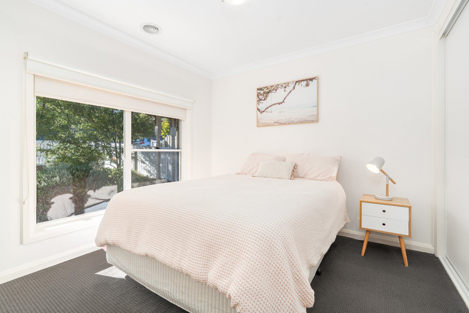 The spacious main bedroom is positioned off the entry, featuring walk-in robes, and a tastefully presented ensuite. Bedroom two is separately zoned, with built-in robes, serviced by a stylish main bathroom with bath, separate shower, modern vanity, and a separate wc. A well-appointed laundry with storage completes the highly functional floorplan.