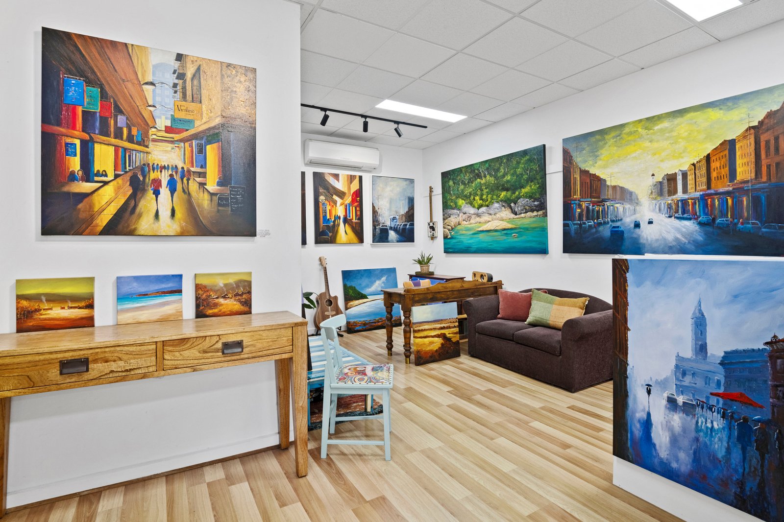 Currently configured as a successful art gallery, the 13.8m × 4.5m interior incorporates a concealed kitchenette, split system and dual WC in the adjoining amenities zone. Step-free street access, a rear entry, allocated car space and residential apartments above enhance both convenience and security, warranting its suitability to both investors and owner-occupiers.