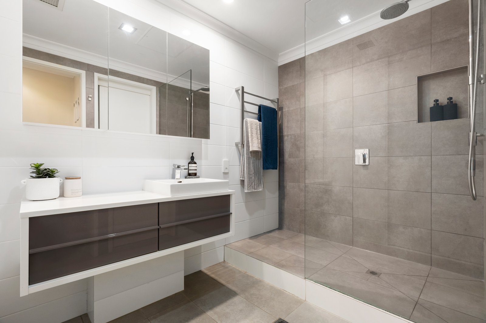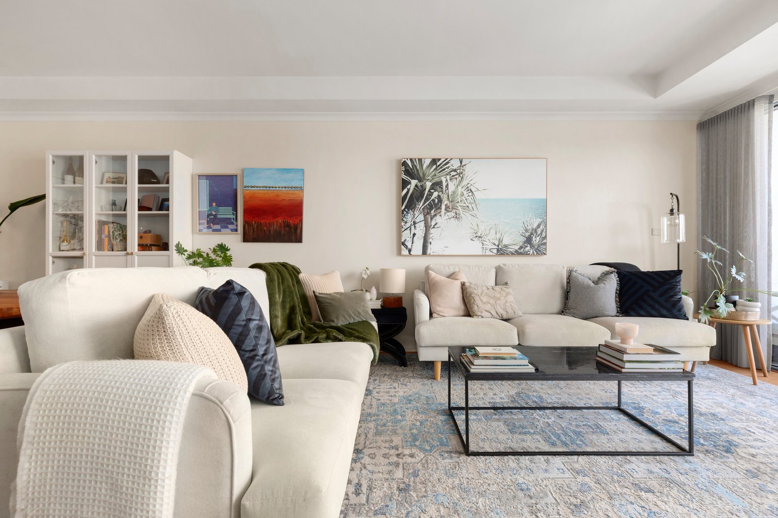 Elevated ceilings, expansive windows and hardwood timber floors define beautifully spacious dimensions that include open plan living/dining areas bookended by an undercover entertaining terrace amidst the views, and a super smart stone finished kitchen whose quality appliances, extensive storage and bench space would be the envy of many a household. Two bedrooms with mirrored BIRs are complemented by a sleek and sophisticated fully tiled bathroom with ample storage, heated towel rail and walk-in shower including the main with ceiling fan. Further highlights include a full European laundry with storage, ducted heating/cooling, double glazing and soundproof insulation, secure intercom building and complex entry, and lift accessed secure parking with over-bonnet storage. Set in superb, landscaped gardens with colonnades and water features, resort style amenities include pool, gym, tennis court and BBQ areas.