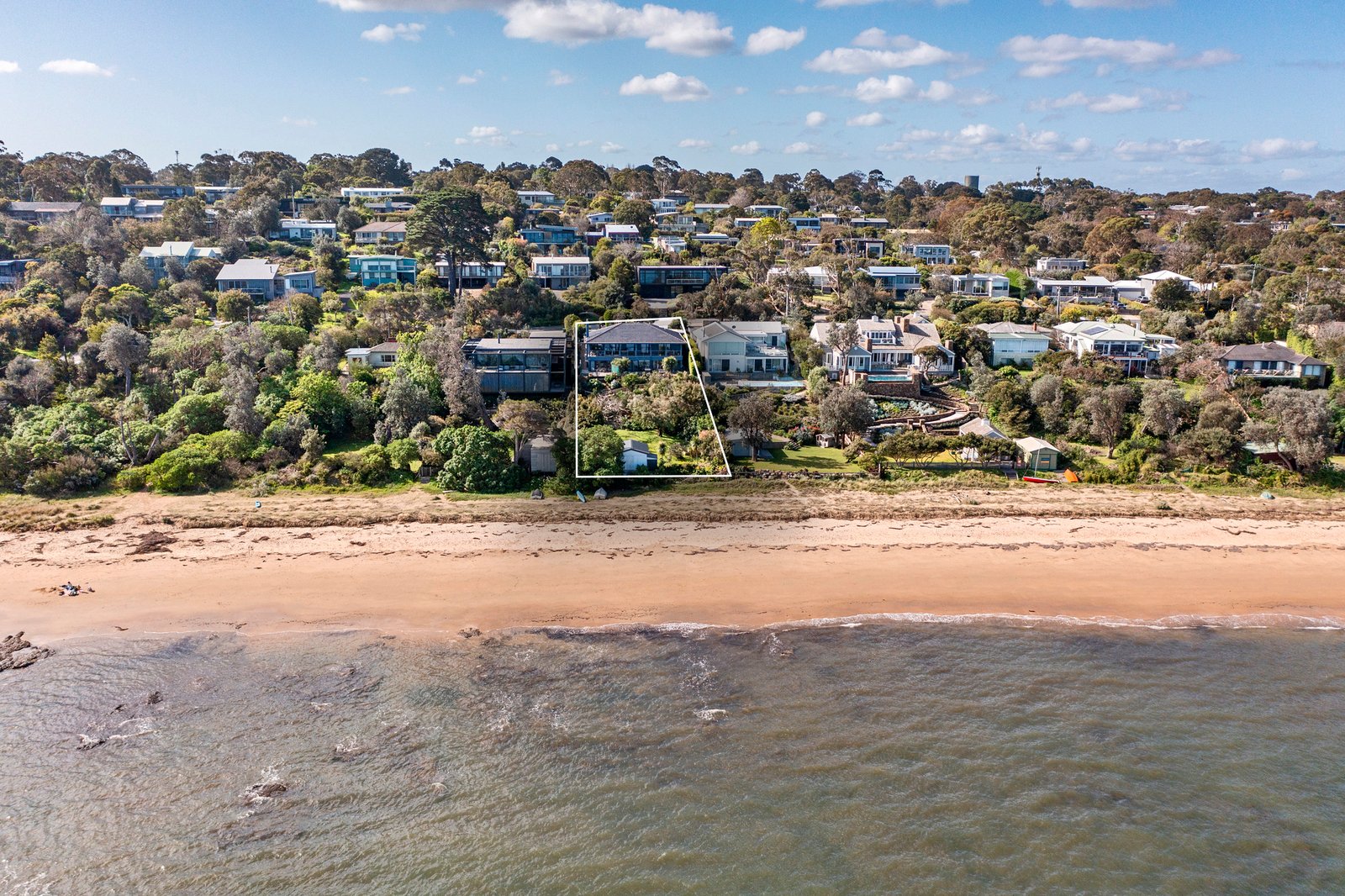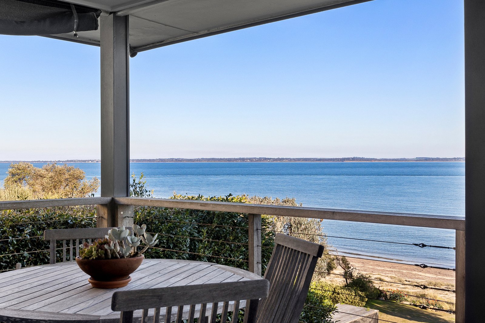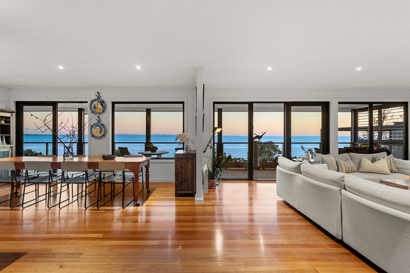 A rare beachfront treasure with its own private beach box, set within an exclusive cul-de-sac on 1,431 sqm (approx), this residence redefines coastal indulgence with direct access to pristine sands and breathtaking views that stretch across Western Port from Phillip Island, The Nobbies and Flinders’ West Head.