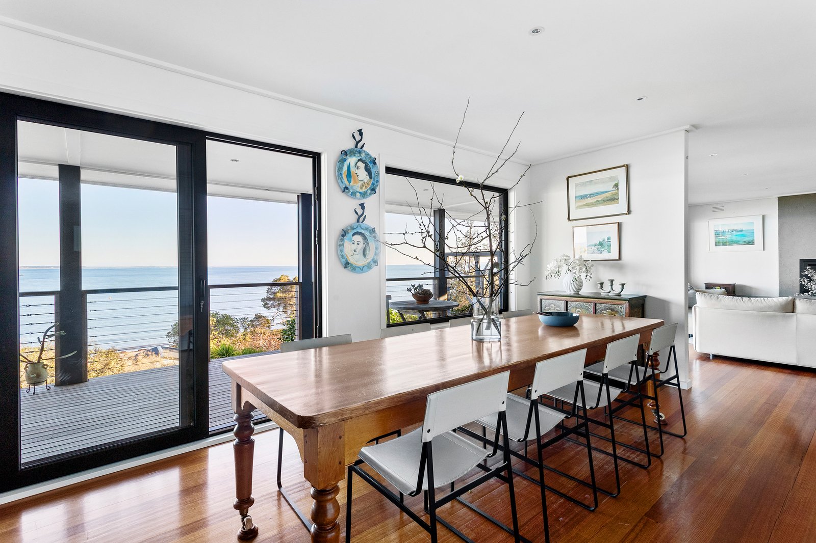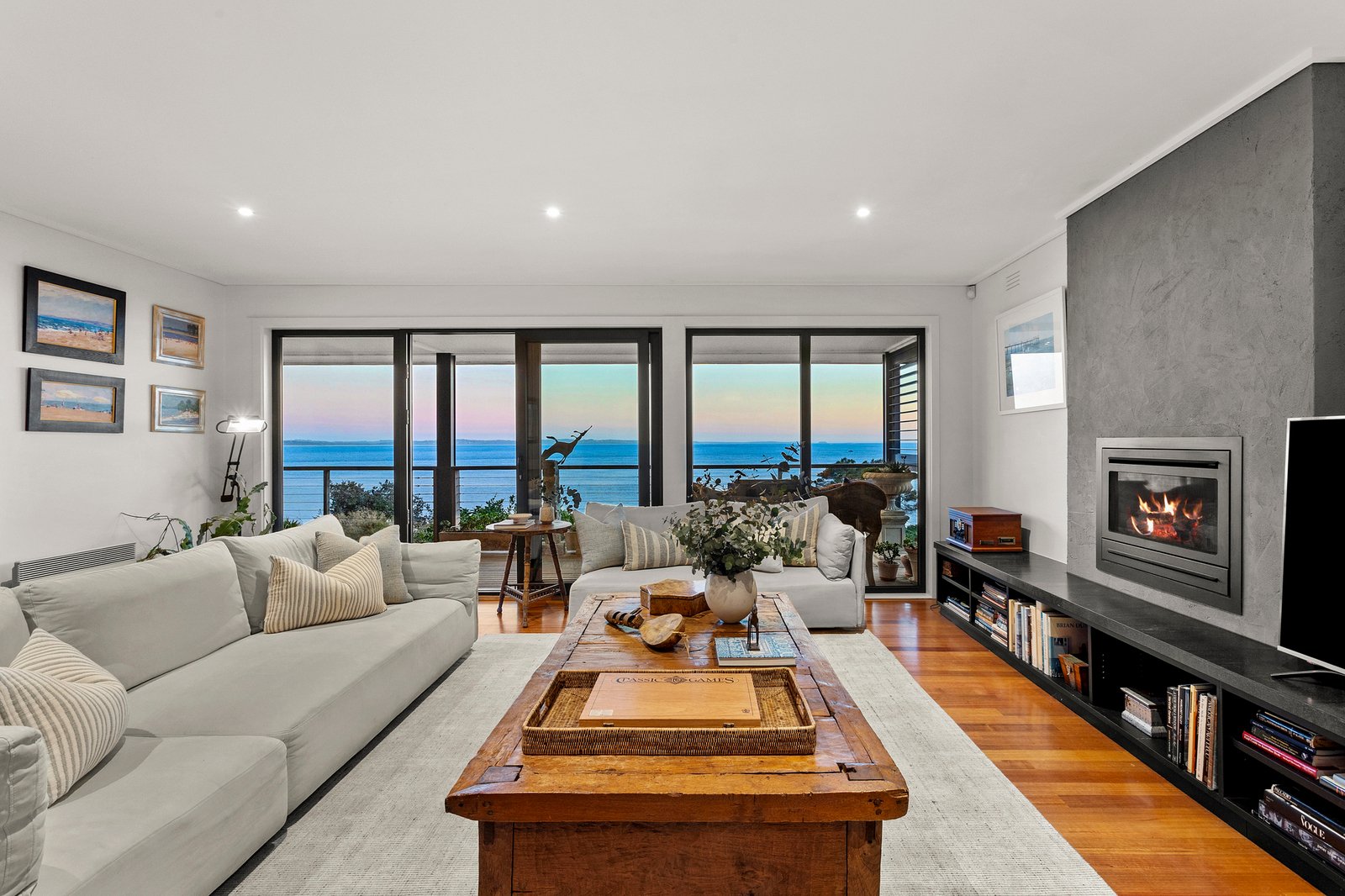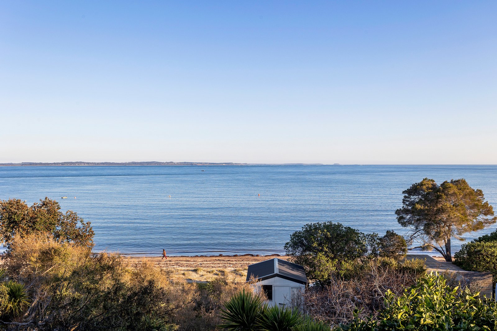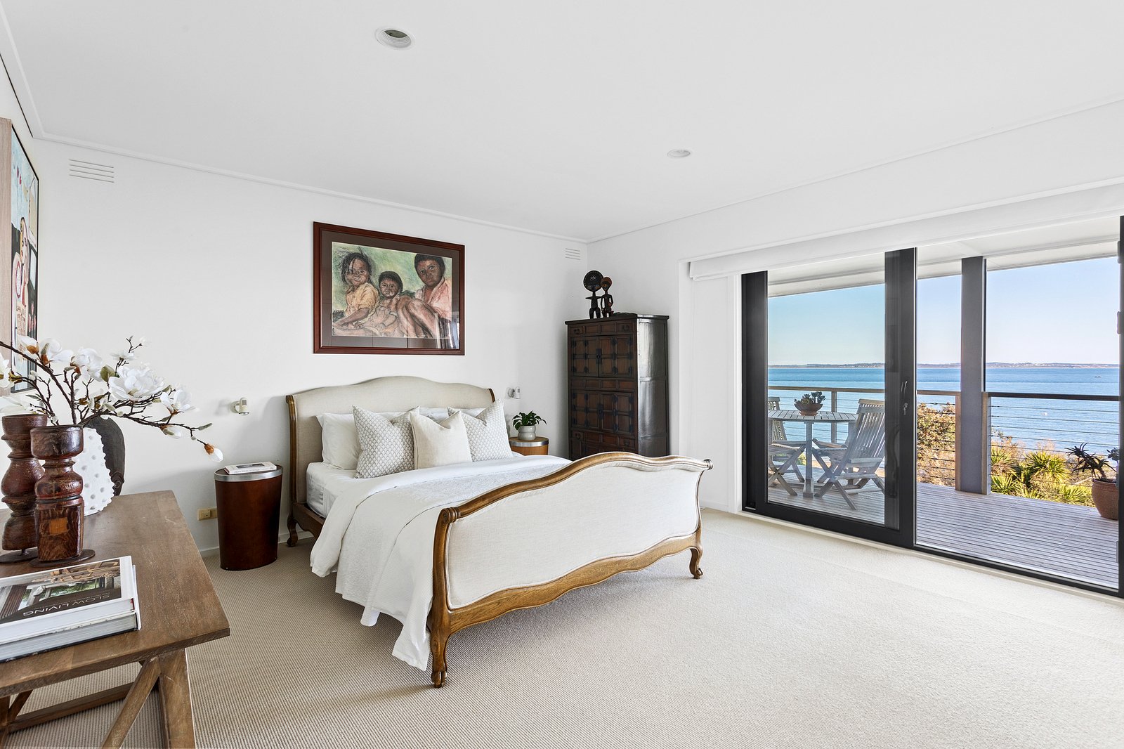 A rare beachfront treasure with its own private beach box, set within an exclusive cul-de-sac on 1,431 sqm (approx), this residence redefines coastal indulgence with direct access to pristine sands and breathtaking views that stretch across Western Port from Phillip Island, The Nobbies and Flinders’ West Head.