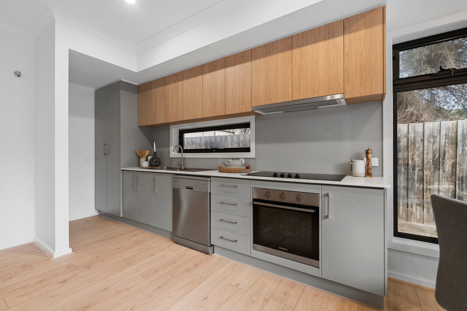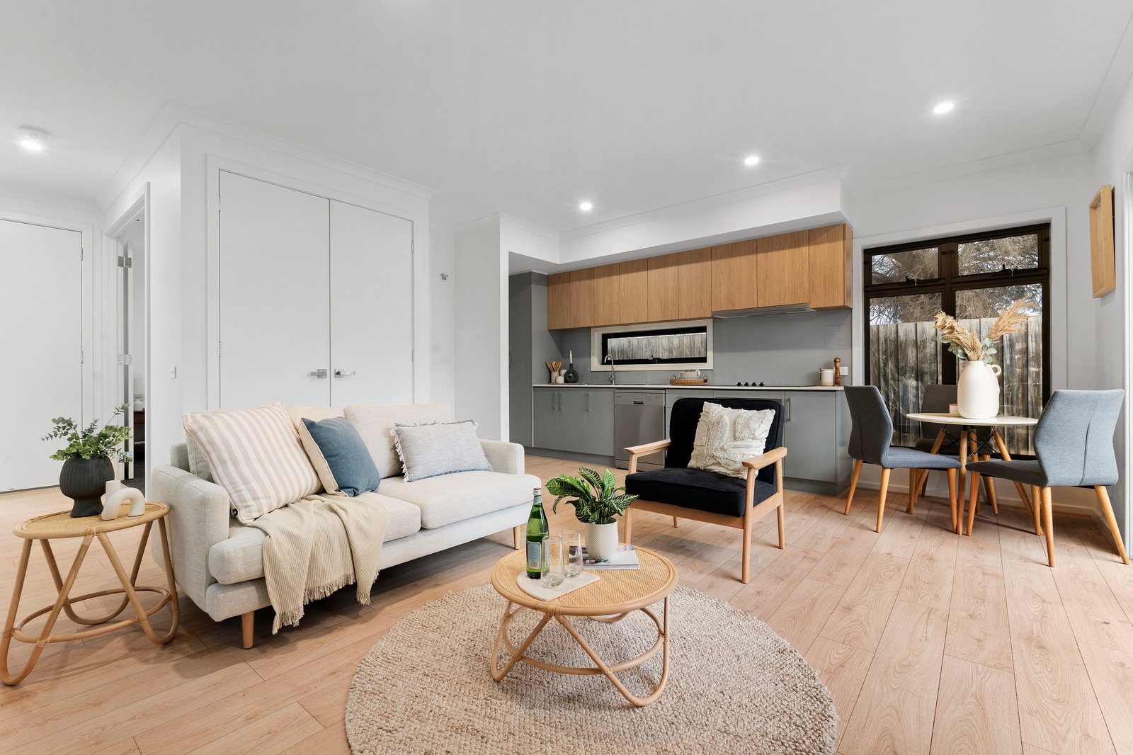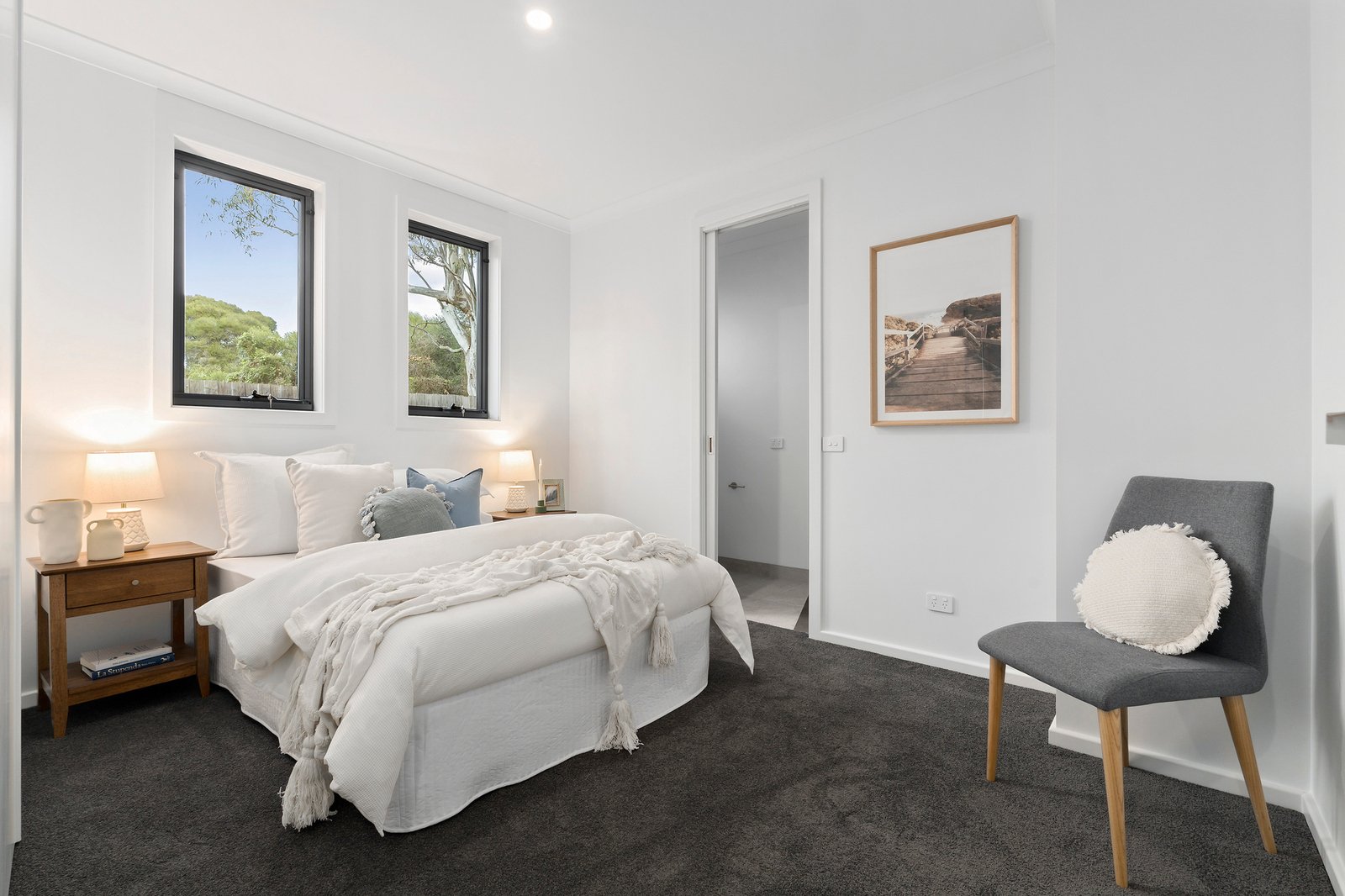 Brand-new contemporary luxury awaits with this up to four bedroom, three bathroom residence, located for a relaxed beachside lifestyle, just moments from the golden sand. One of only three on the block and practically freestanding, you'll love the maximised natural light and move-in ready appeal. Inside, the open-plan living space is flooded with northern sunshine, seamlessly extending to a private courtyard garden and entertaining alfresco, accompanied by a well-equipped gourmet kitchen with streamlined cabinetry and an expansive breakfast bar for casual dining. Designed with flexibility in mind, the stylish lounge room has been cleverly configured for use as a downstairs ensuite bedroom, while three further bedrooms and two bathrooms are located upstairs. The softly carpeted master bedroom is a serene sanctuary, complete with a walk-in robe and ensuite, while the two additional robed bedrooms share a family-sized bathroom. You’ll also delight in the bright and airy study nook/sitting area which opens onto a sun-soaked balcony – the perfect spot for morning coffee. Stone surfaces and timber floors surround you with sophisticated coastal elegance, while split-systems ensure year-round comfort. Features include under-stair storage, a single automatic garage with internal access and rear roller door, plus additional driveway parking. Conveniently positioned, you’ll love the lifestyle at your doorstep. Just steps from Belvedere Primary School and bus stops, plus within walking distance of local shops, playgrounds and reserves. Freeway access, the train station, supermarkets, cafes and beautiful beaches are all within easy reach.