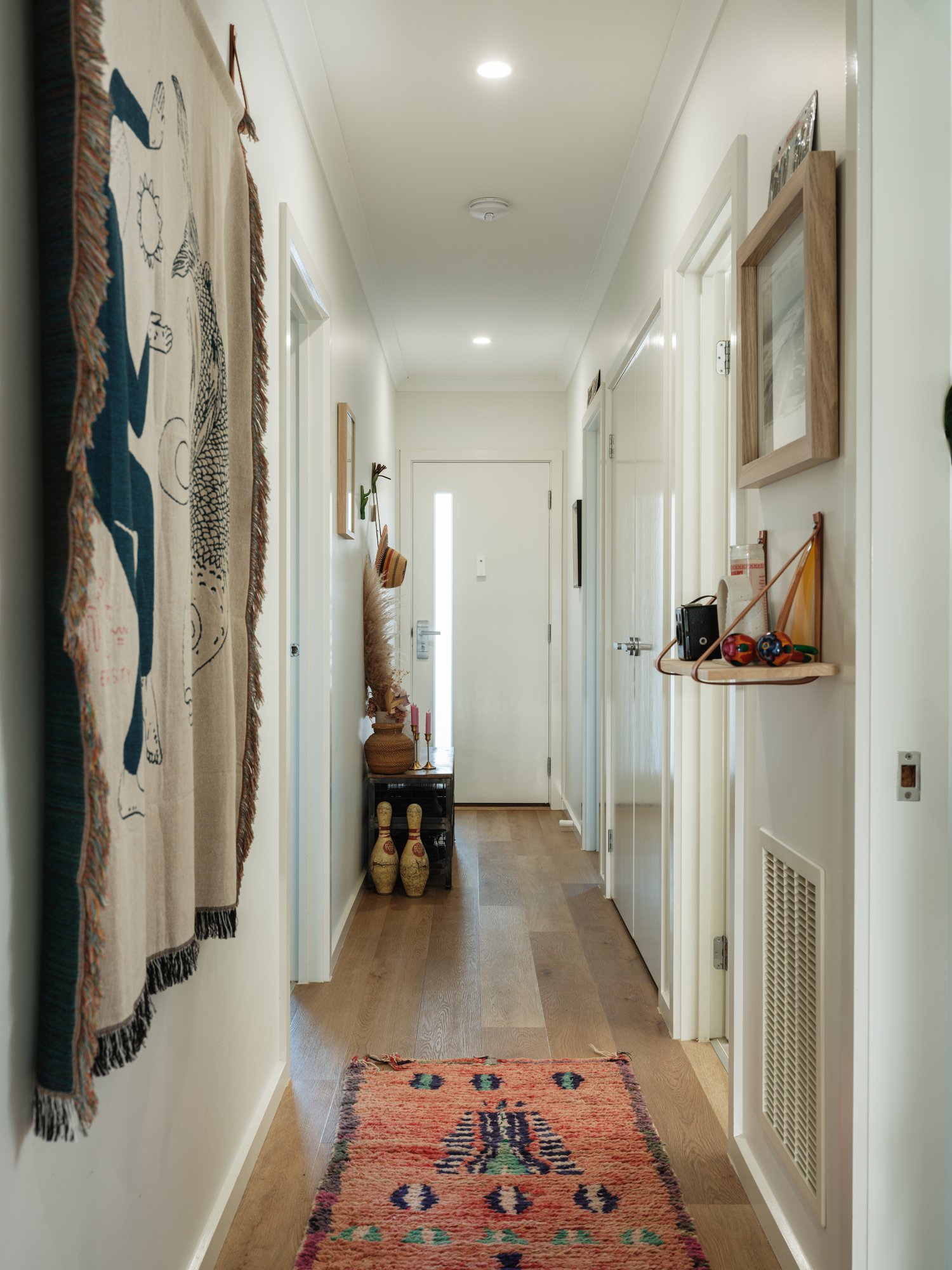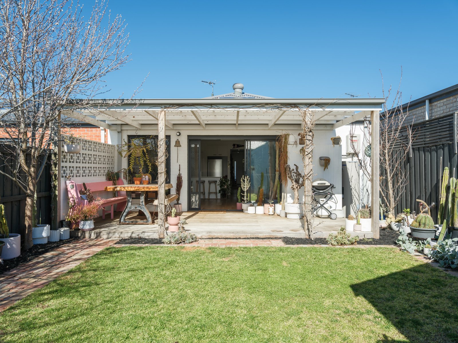 Outdoors, the private, low-maintenance garden features established trees, lush lawn and recycled red brick path. A breeze block feature wall adds charm, while the alfresco area is perfect for relaxed entertaining.