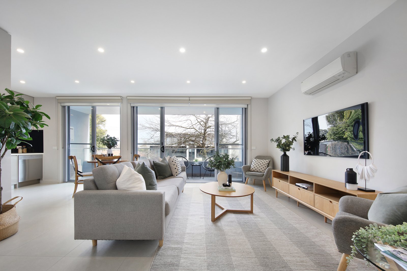 Escape to sun, serenity & secluded treetop living in this virtual dual-suite1st-flr apartment! Cleverly configured with 2 bedrooms (each with a bathroom), this quiet apartment shines with a full-width balcony oriented to the afternoon sun & a library-shelved home-office with mirrored feature-wall. Appointed to a rare standard of excellence with a sleek Smeg and Emporite kitchen with integrated LIEBHERR fridge & freezer, fully-tiled bathroom & ensuite, & porcelain flagstone floors, this elite apartment goes beyond prestige with stone benchtops, streamlined robes, r/c air-con for every room, video-entry & basement garaging & extra storage. With the tram at the end of the street, the station & shops within a walk & Chadstone within a minute, this is the ultimate treetop hideaway.