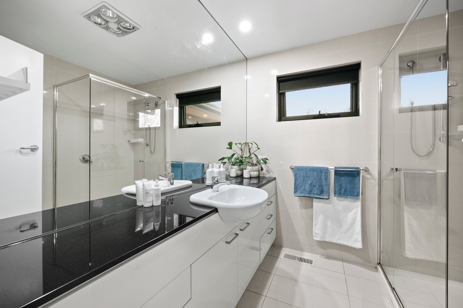 Accommodation includes a luxe main bedroom with premium built-in robes and a sleek ensuite, three additional generously sized bedrooms with mirrored built-in robes, and a sparkling central bathroom with a bath and shower.