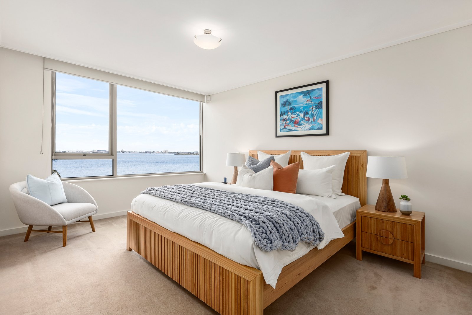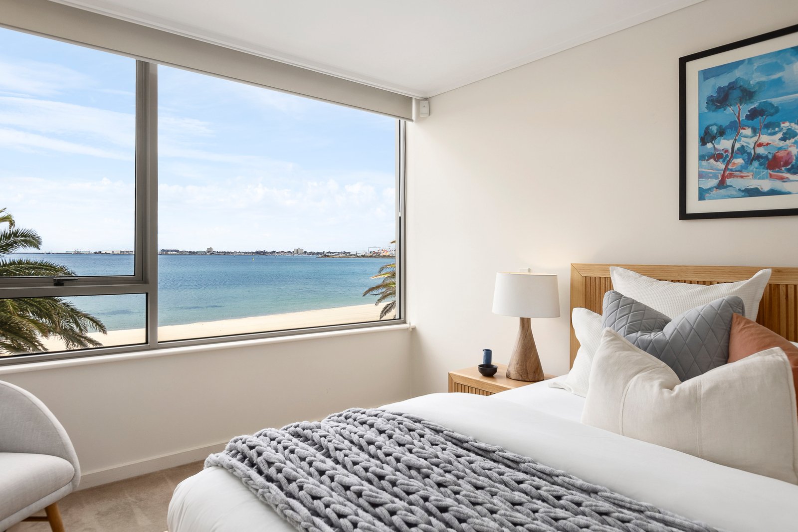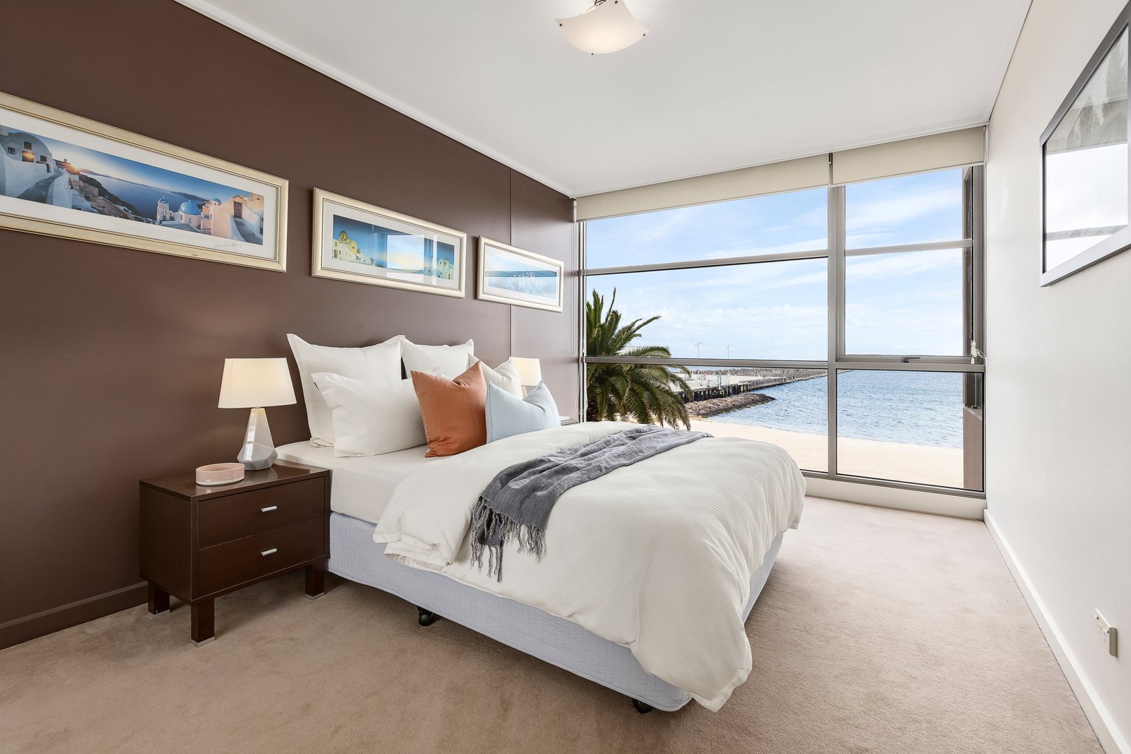 Commanding uninterrupted views across Port Phillip Bay, this refined two bedroom apartment offers a front-row seat to Melbourne’s most coveted waterfront. Steps from Princes Pier and the shoreline, it balances the ease of low maintenance living with the luxury of a panoramic outlook.