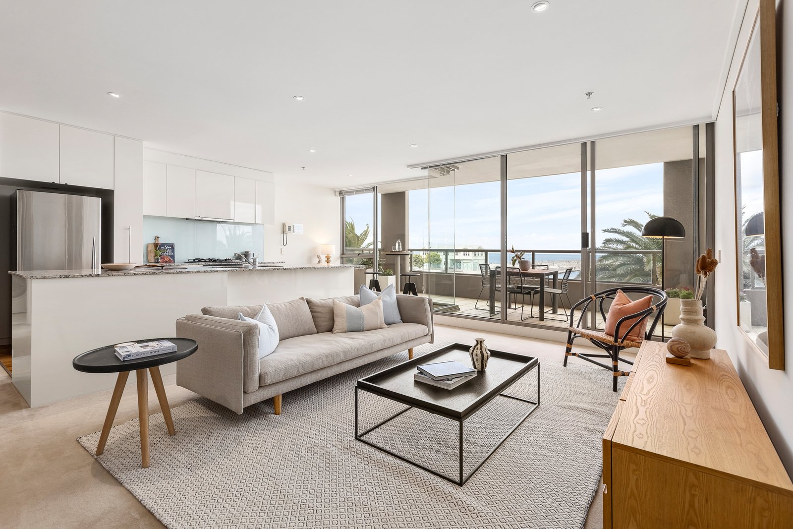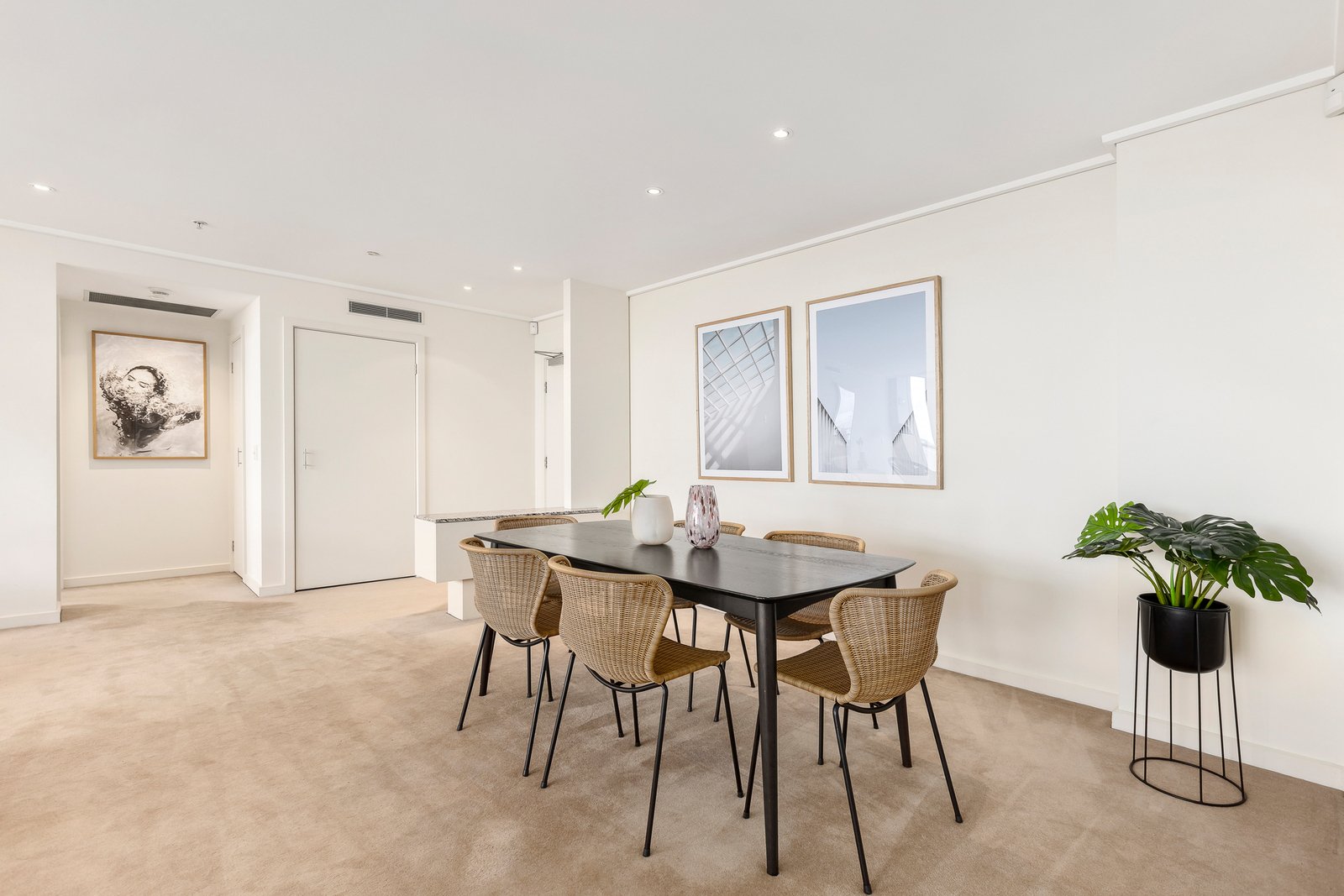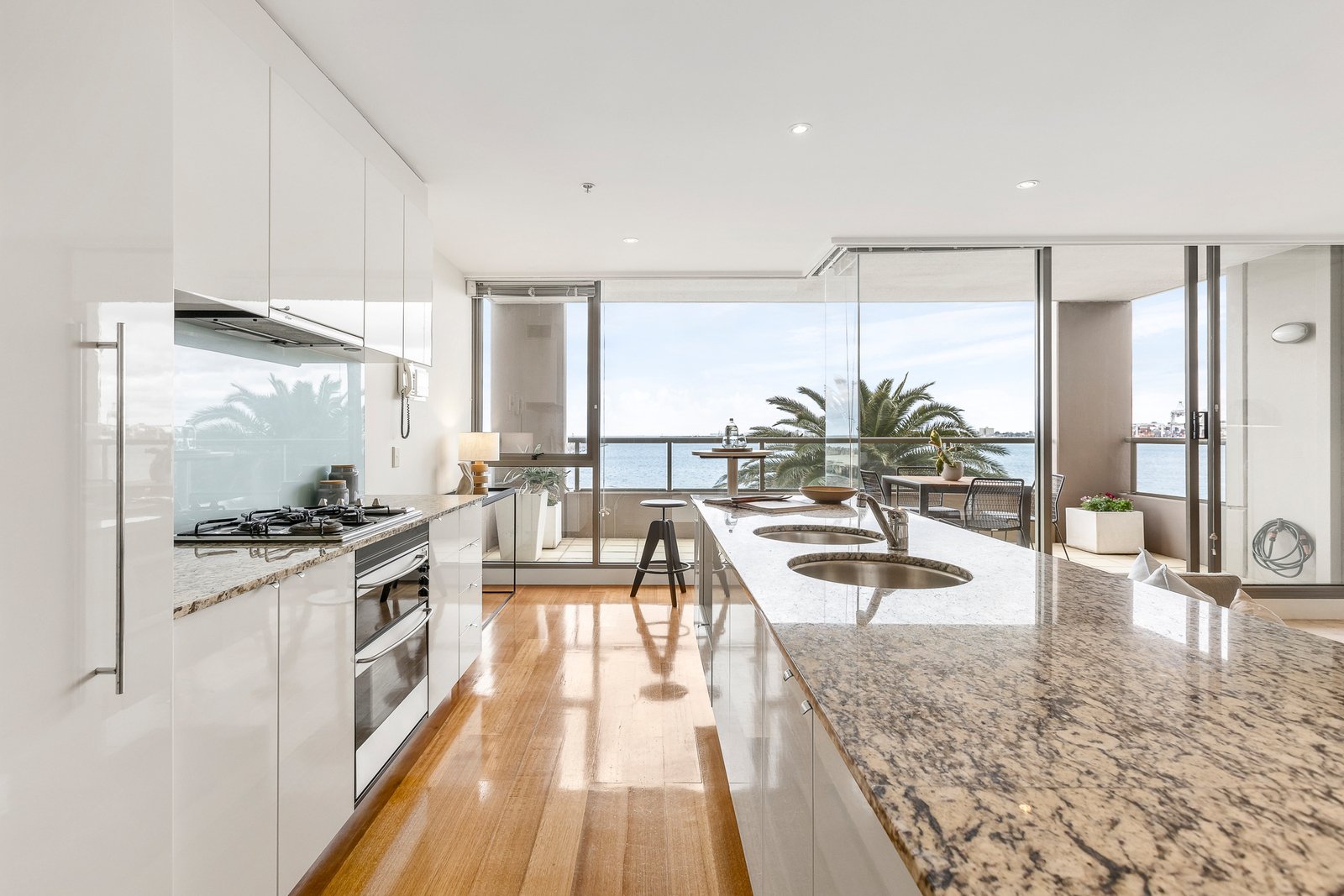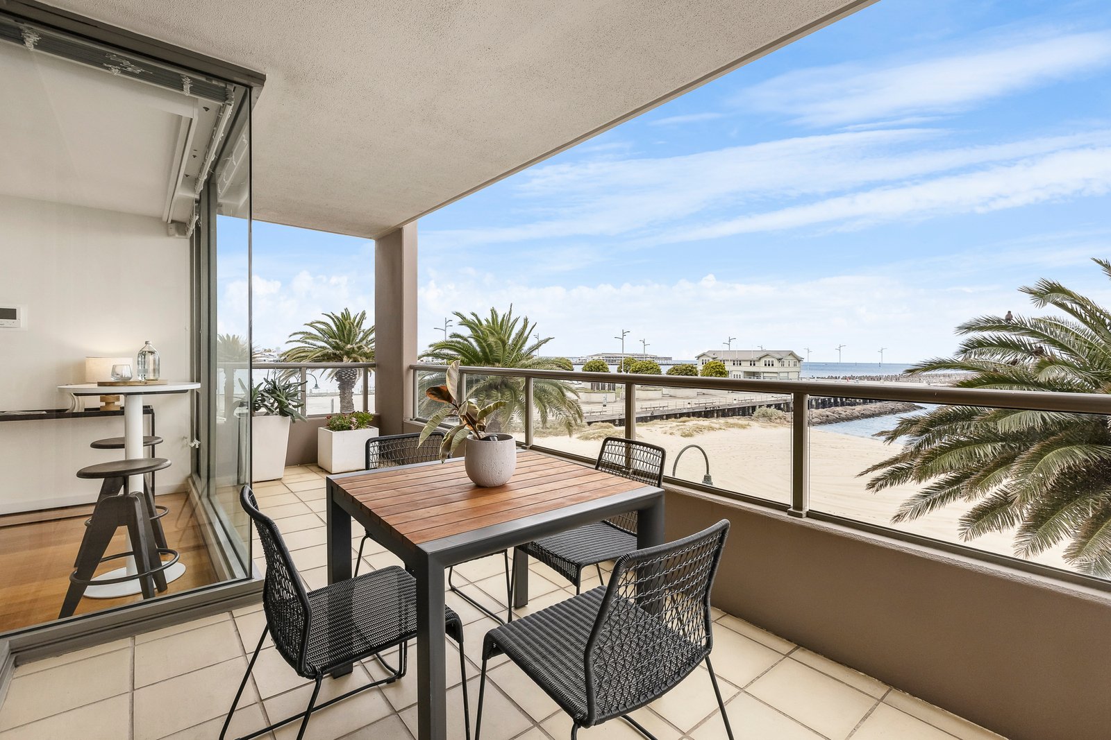 Commanding uninterrupted views across Port Phillip Bay, this refined two bedroom apartment offers a front-row seat to Melbourne’s most coveted waterfront. Steps from Princes Pier and the shoreline, it balances the ease of low maintenance living with the luxury of a panoramic outlook.