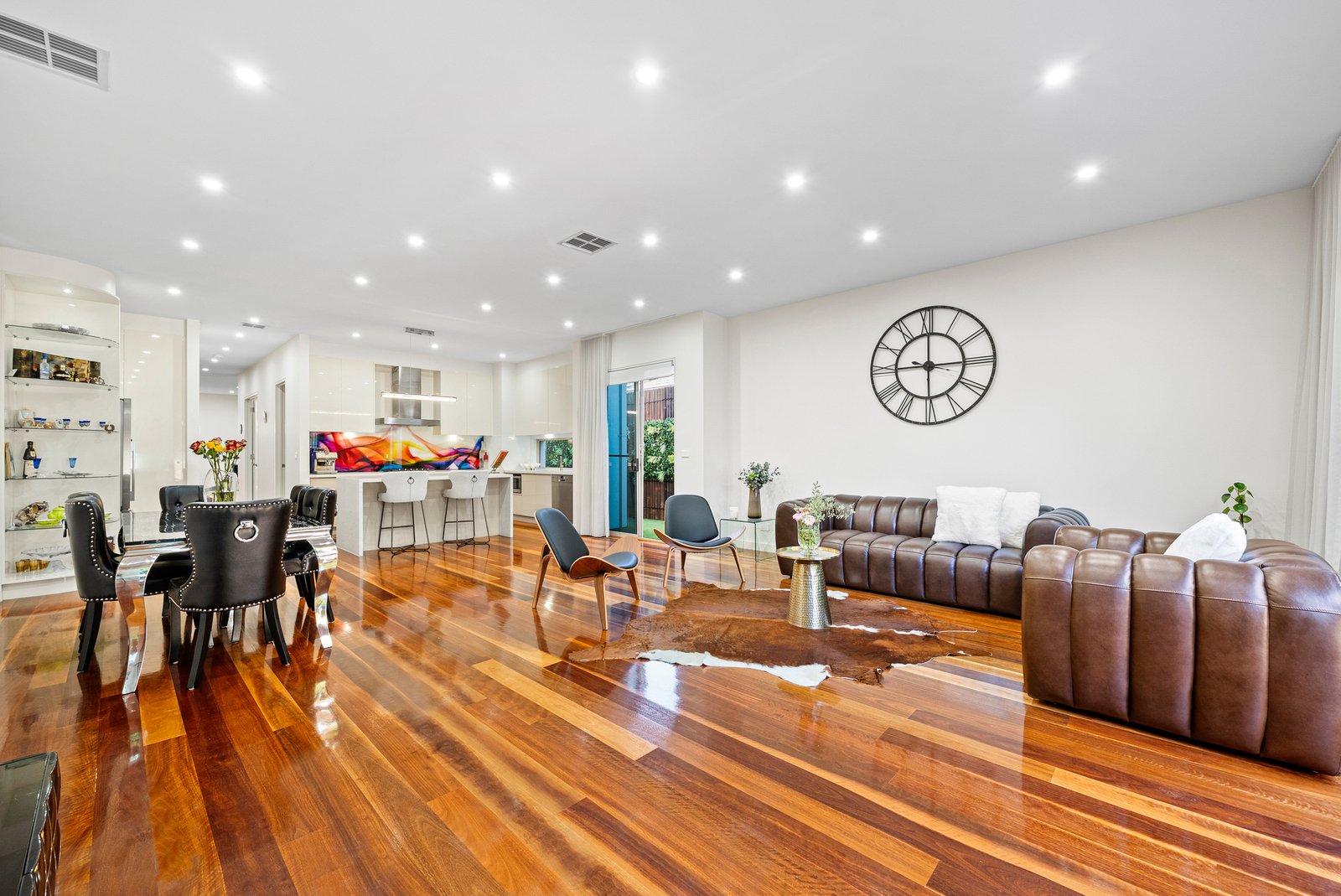 Polished timber floors flow throughout the home, from the generous living spaces to each bedroom, while the fully tiled bathrooms exude luxury and practicality. A bedroom with a full bathroom on the ground floor provides versatility for guests or extended family.