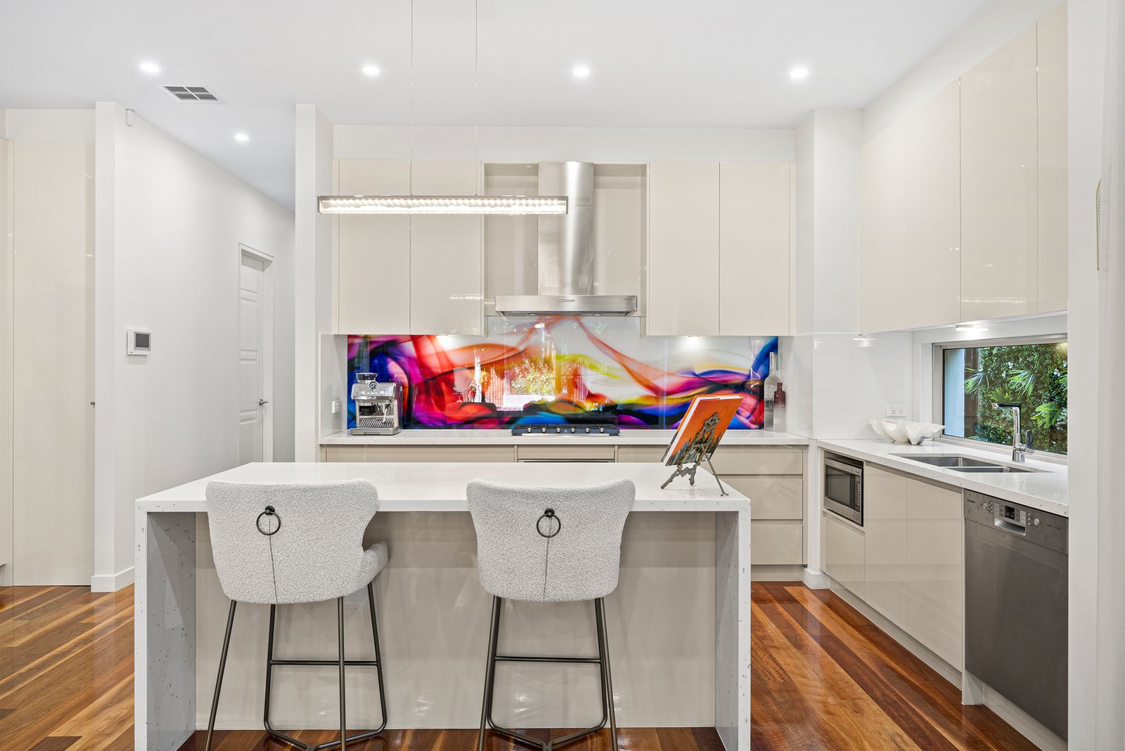 The gourmet kitchen impresses with a streamlined design, feature splash back and quality finishes – ideal for both everyday living and entertaining.