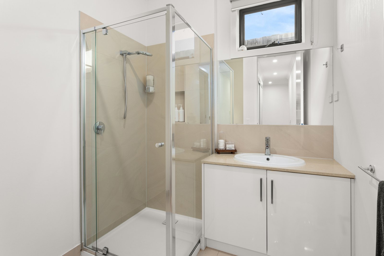 The central living zone doesn’t compromise on space, with this enchanting main area promising timber floors, a northern aspect, and so much room for lounge and dining activities. Tucked away off the living space is the functional stone kitchen, which impresses with a chic glass splashback and stainless steel appliances including a dishwasher.