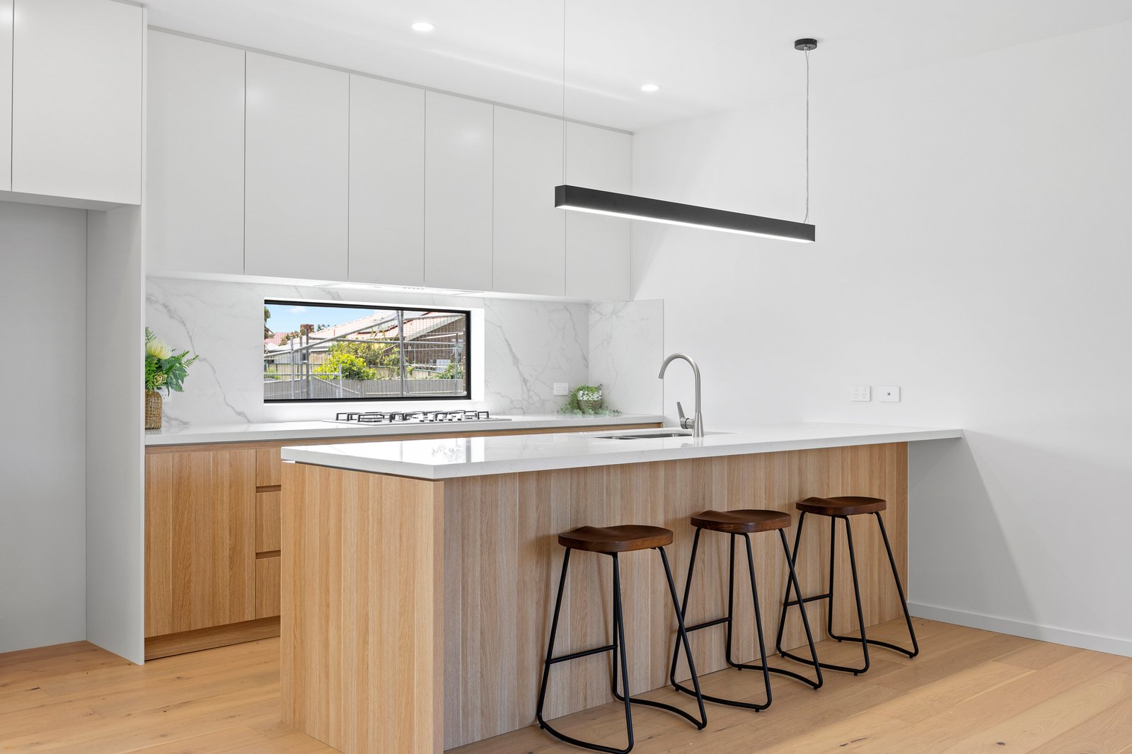 Cleverly accommodating with a vast upstairs master suite for parental privacy, this adaptable design features robe-fitted secondary bedrooms for the kids. Absolutely up-to-the-minute with a state-of-the-art Artusi appliance kitchen fronted by a vast dining-bench, this all-new prestige home features well-appointed bathrooms and ensuite with high-end Oliveri whiteware, great storage including robes, and family-wise extras including a pantry and a large separate laundry.