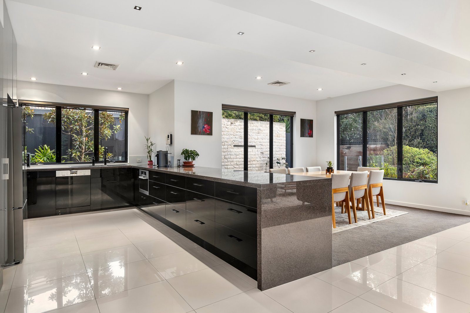 The chef's kitchen is beyond compare dazzling with endless granite bench tops/buffet plus Miele appliances (induction cook top, oven and steam oven), walk in pantry and custom, pull out cabinetry offering a place for everything. A full-size laundry and guest powder room are similarly appointed with a host of premium extras.