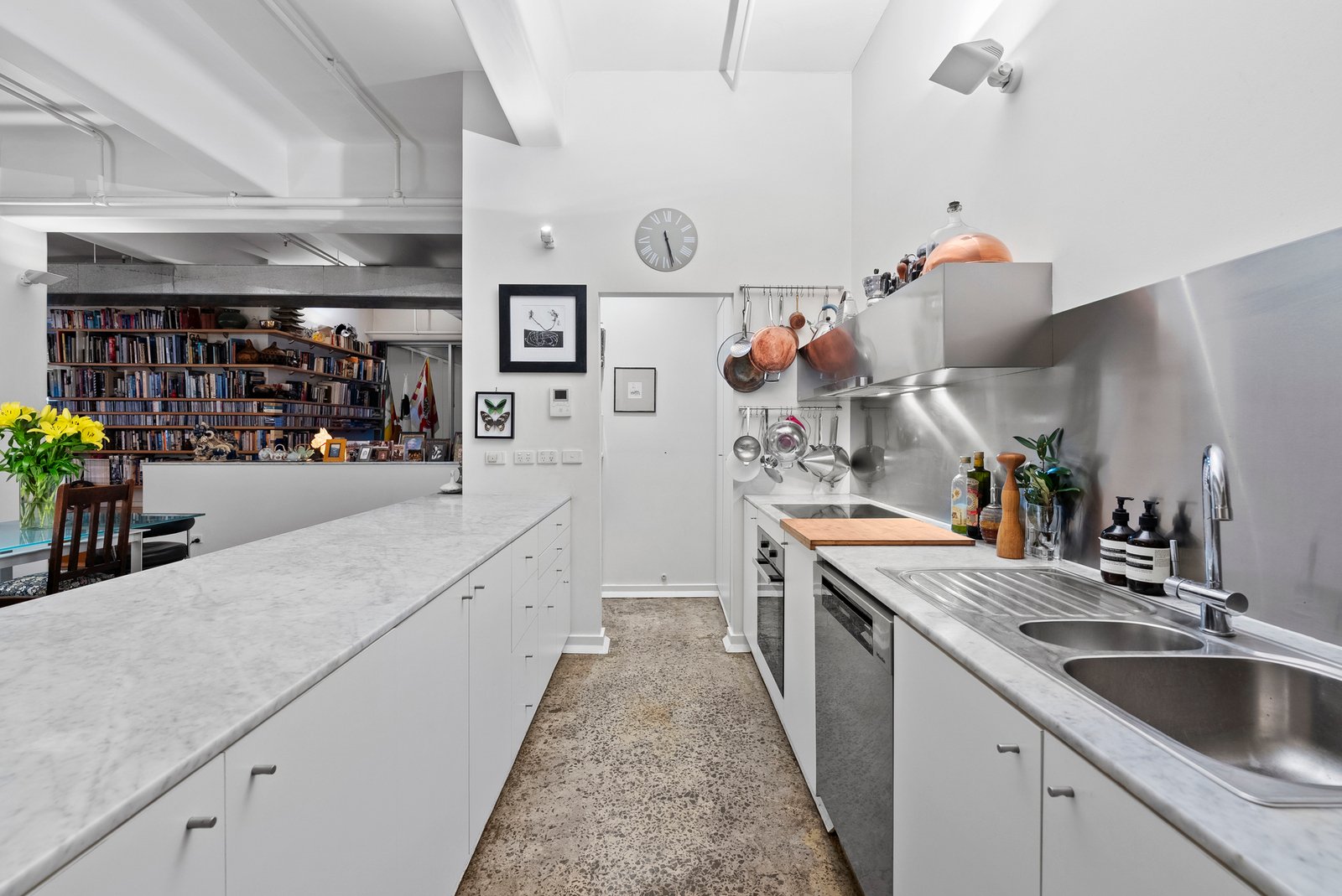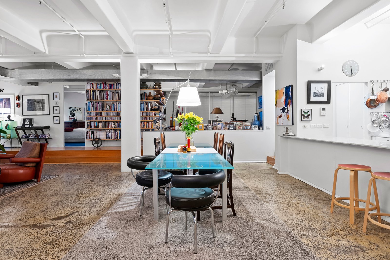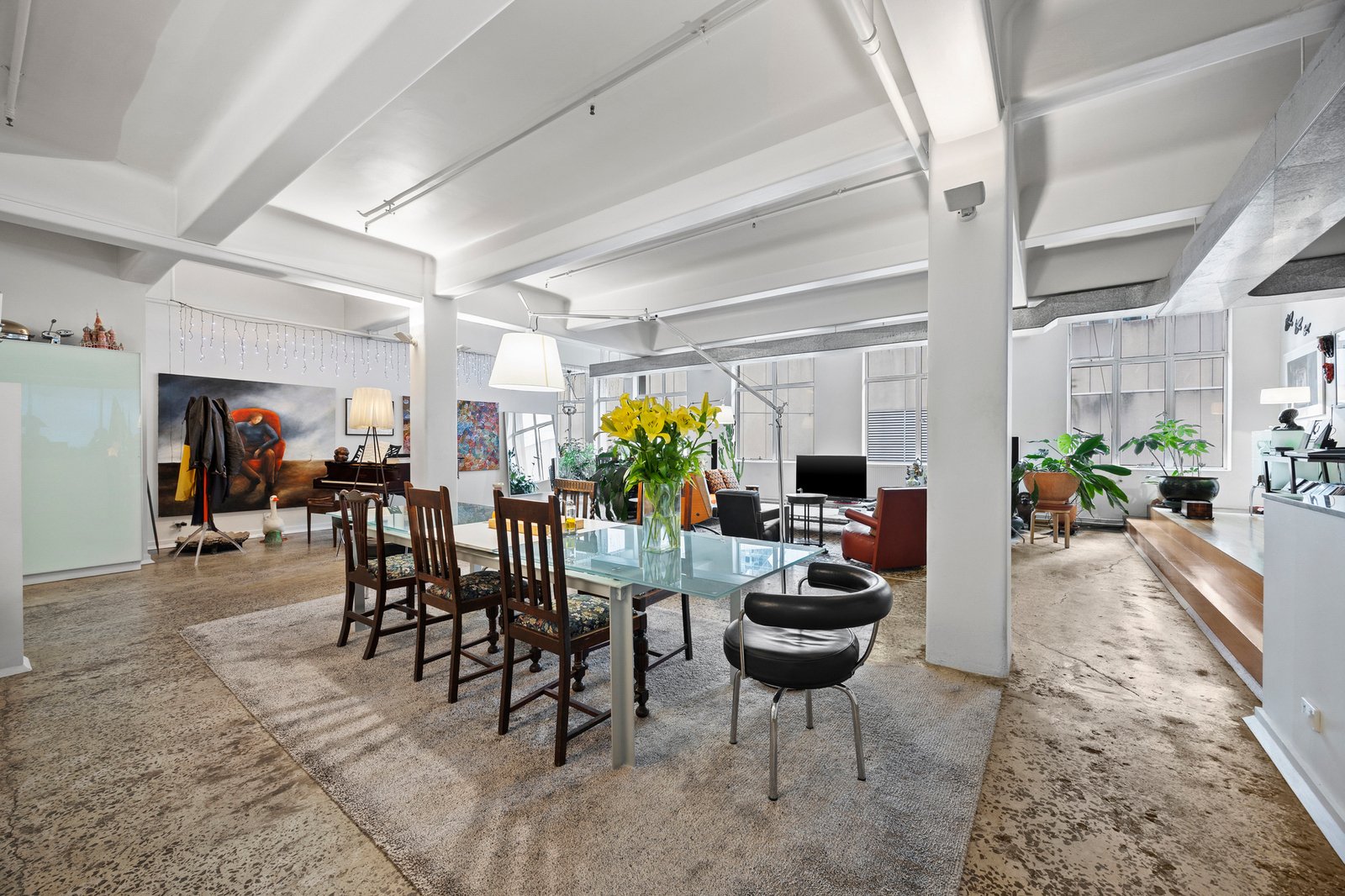 Polished concrete floors and soaring ceilings amplify the sense of scale, while vast panes of glass flood the spectacular interiors with beautiful natural light. An immense living and dining domain unfolds with dramatic effect - expansive enough for grand celebrations yet effortlessly adaptable for intimate gatherings. The open design offers limitless possibilities - spaces to dine, lounge, create, or entertain with breathtaking grandeur.