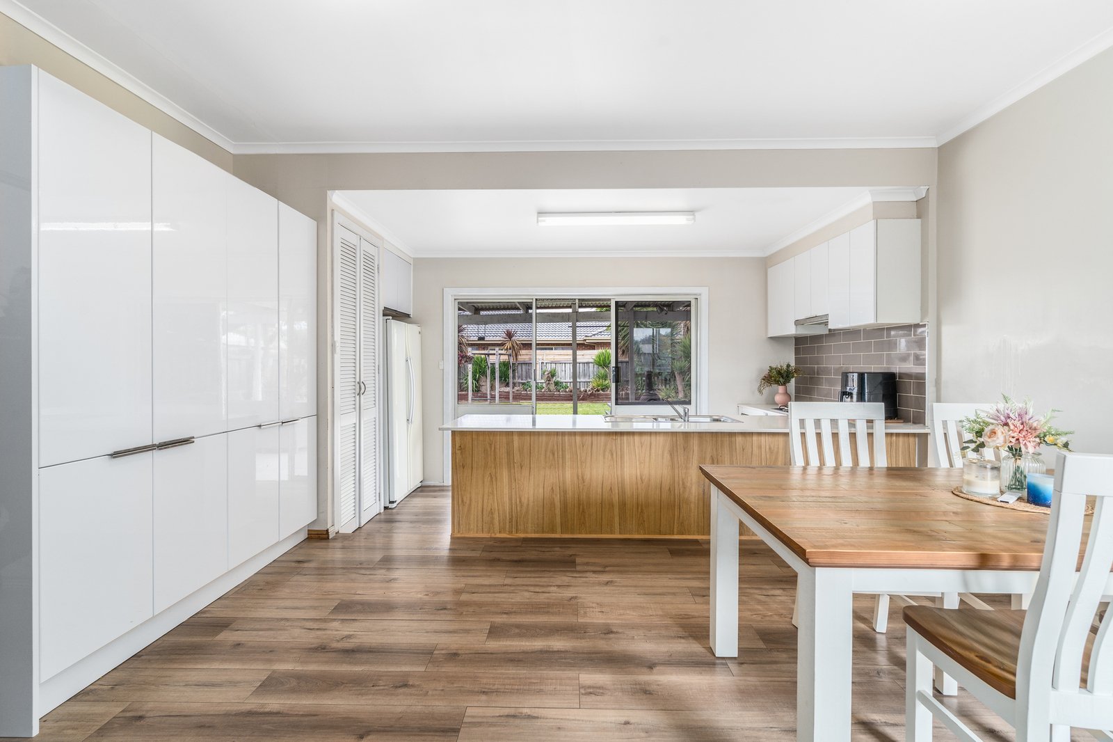 • Open-plan kitchen and dining space with direct access through to the alfresco entertaining space. The kitchen features an oversized stone bench and breakfast bar, newly installed dishwasher and attractive cabinetry.