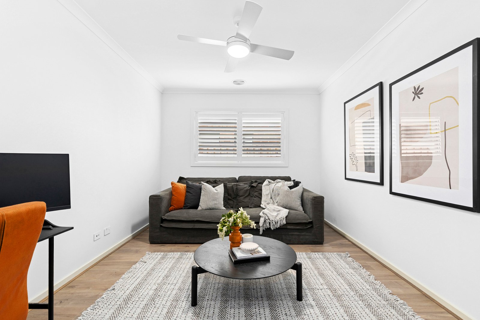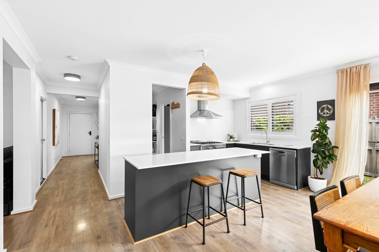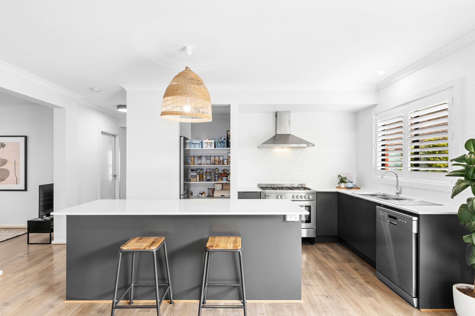 The main living area is a spacious open plan layout, bathed in natural light, with an effortless indoor-outdoor connection. The quality kitchen features stone benchtops, 900mm dual fuel oven and cooktop, dishwasher, sleek cabinetry, generous storage, walk-in pantry, and chic pendant lighting. Positioned to oversee the dining space and alfresco, entertainers will love the design of this space. An adjoining second living area provides a quiet space to retreat, watch a movie, or send the kids to play, whilst remaining connected to the main hub of the home.