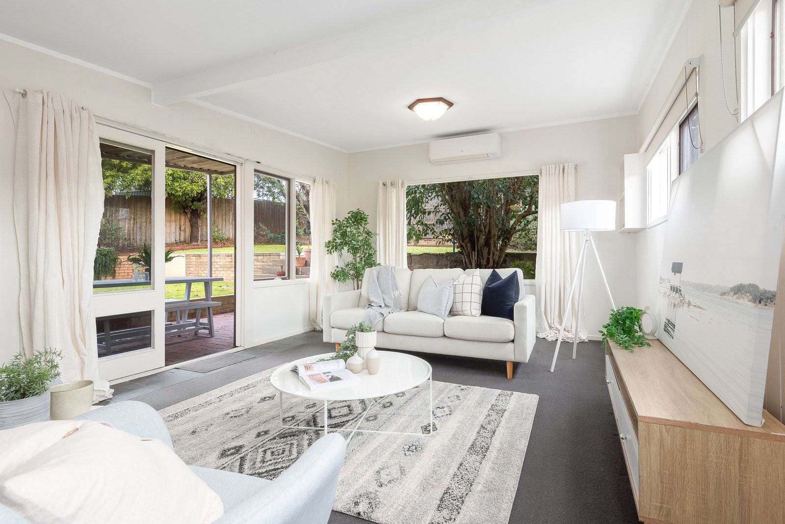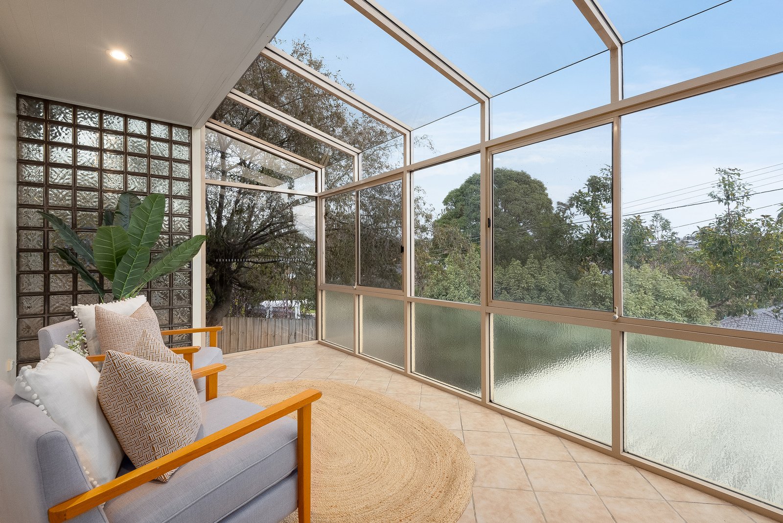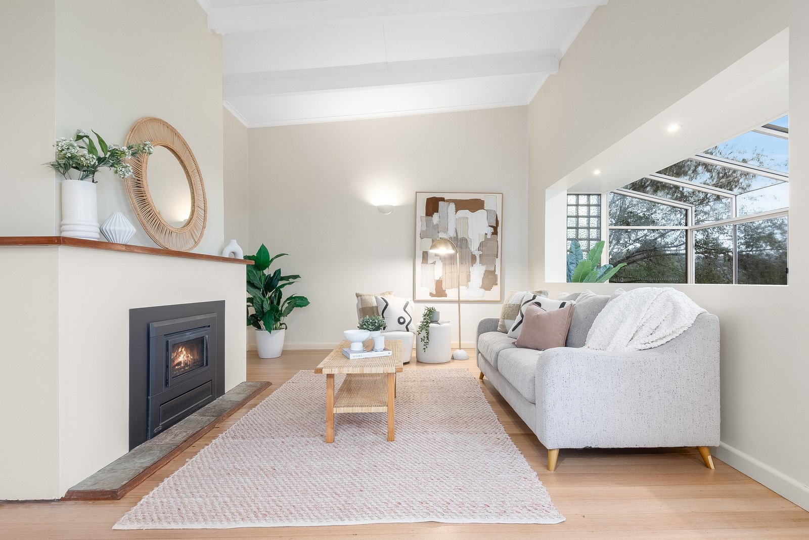 Set behind established gardens, the classic mid-century façade retains its original charm. Entry via a stunning atrium-style sunroom introduces the light-filled theme of the interiors, offering the perfect space to enjoy spectacular views of the leafy surrounds. Vaulted ceilings and exposed beams enhance the sense of light and space within, while polished timber floors and a gas log fire create a warm and inviting ambience throughout. The open plan living flows seamlessly into the adjoining kitchen and dining area. The contemporary kitchen features 900mm oven and cooktop, dishwasher, ample bench space and generous storage. To the rear of the home, a large second living area or rumpus room connects with the alfresco, offering a quiet space to retreat, send the kids to play, or an impressive indoor-outdoor entertaining zone.