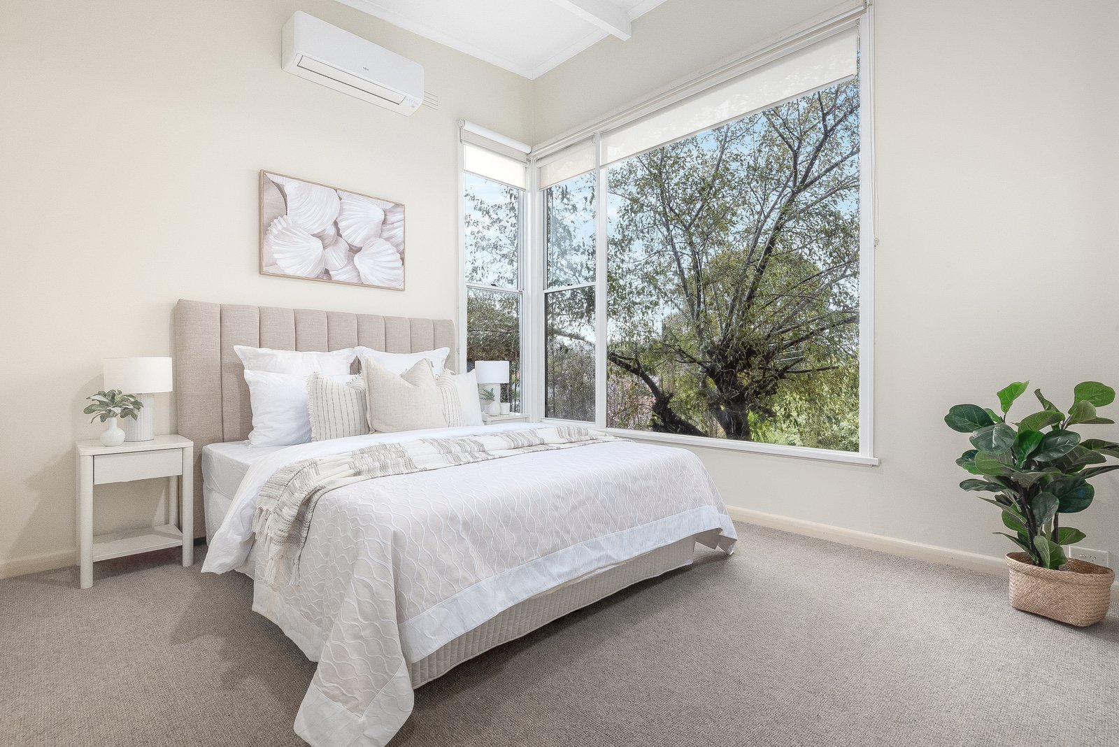 The main bedroom offers a tranquil outlook, with built-in robes and a tastefully presented ensuite. Bedroom two includes built-in robes, and bedroom three is positioned on the lower level offering a spacious and secluded retreat. An additional studio on this level provides a versatile space for a home office, extra bedroom or teenager’s haven. The updated main bathroom is presented in contemporary finishes, with a separate wc for family functionality.
