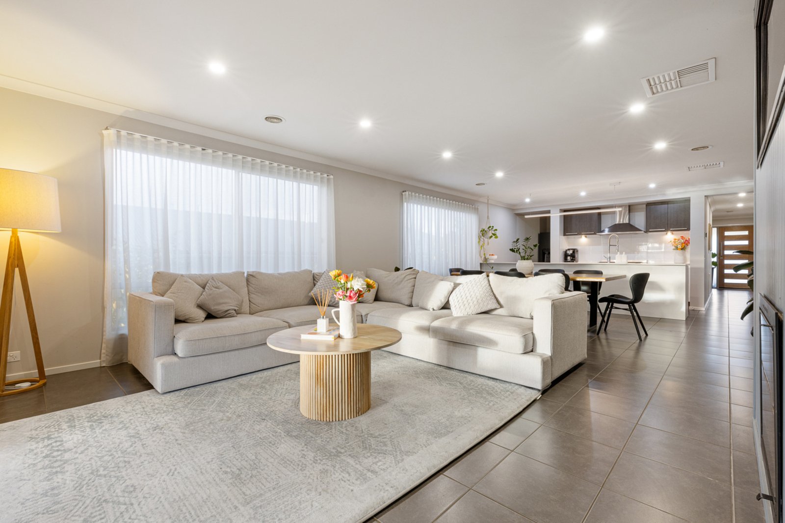 At the heart of the home, a 900mm oven and oversized open pantry set the stage for culinary creativity, while the open-plan living flows seamlessly to the alfresco area, perfect for year-round entertaining.