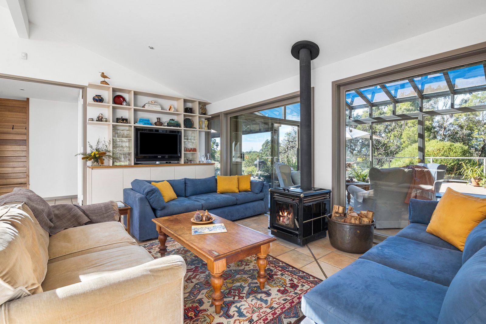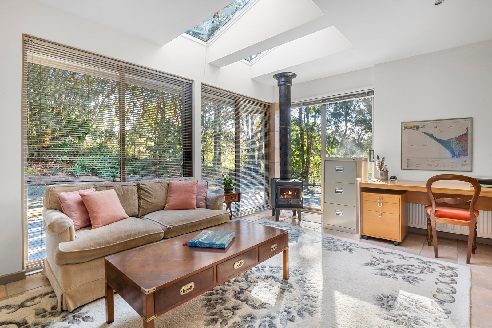 The primary suite is zoned at the far end of the dwelling and includes an ensuite and an adjoining sun-filled den/retreat warmed by hydronic heating and a wood burner, with the option to close off for added seclusion. There are two additional robed bedrooms including one with a dual-access ensuite. The home's impeccable condition, including 8.5kW solar power and a security system, allow it to be enjoyed in all its current glory or reimagined over time through a contemporary lens.