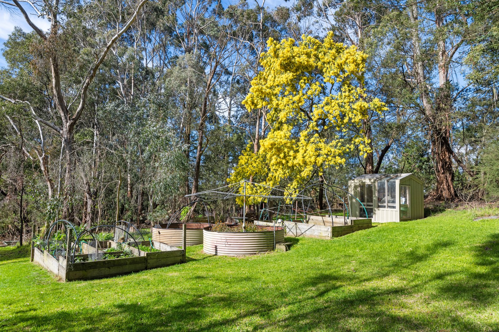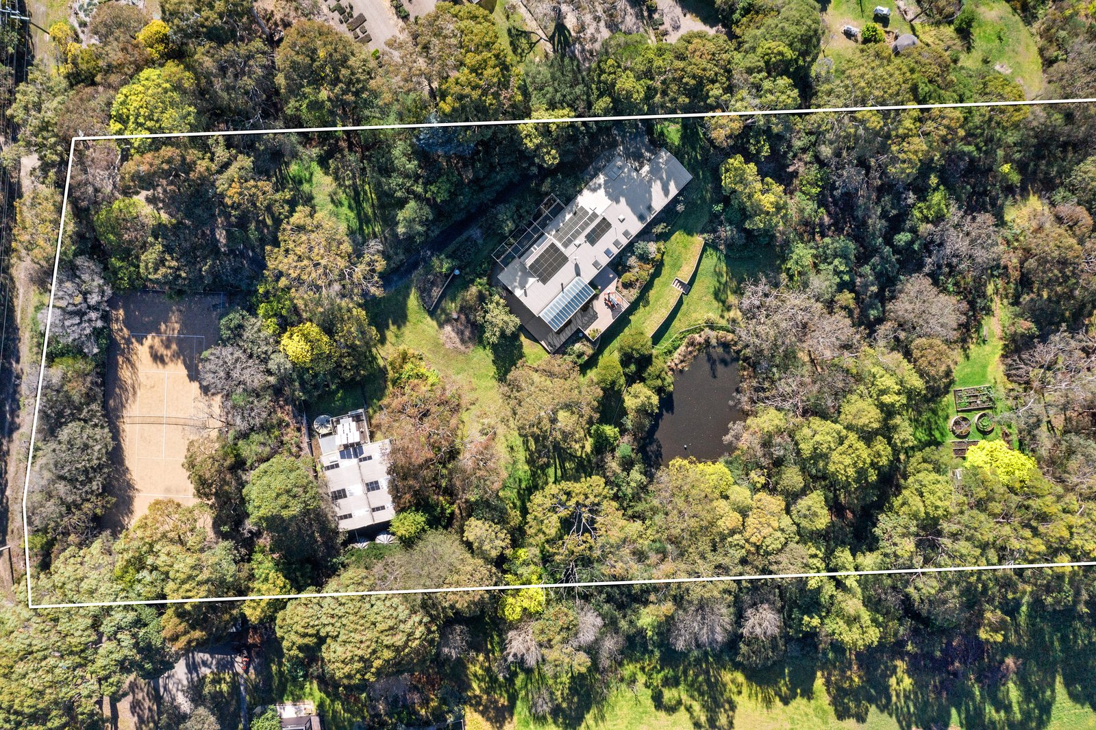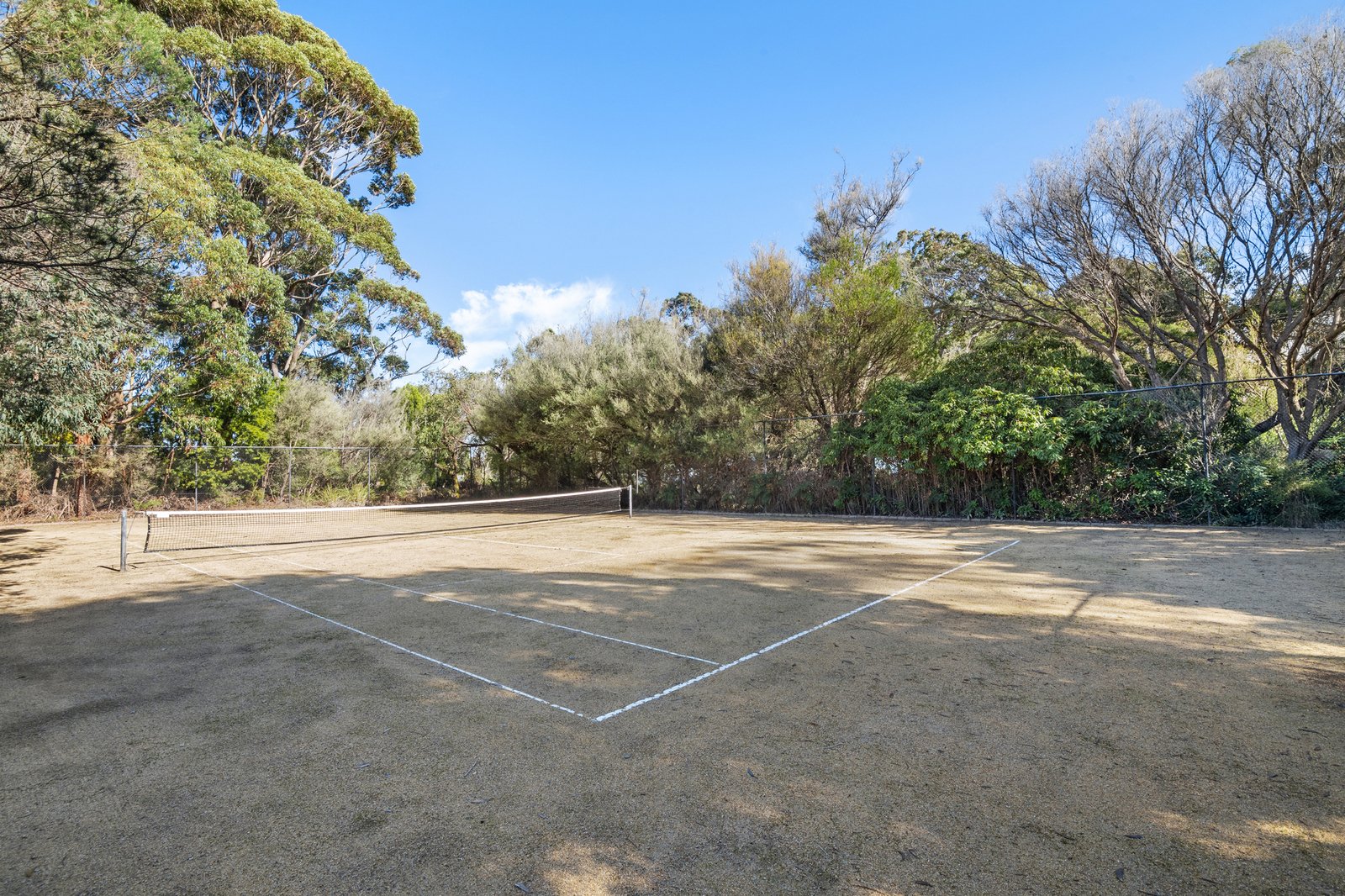 Environmentally attuned, the grounds include revegetated natural bushland, water tanks, and a dam-fed vegetable garden including raspberries, globe artichokes, asparagus, broccoli, beans, herbs and tomatoes with a dedicated potting shed nearby. The home with a double carport and shedding are encompassed within electric fencing. A full-sized tennis court lies beyond this fence and the property is accessed via a remote front entry gate.