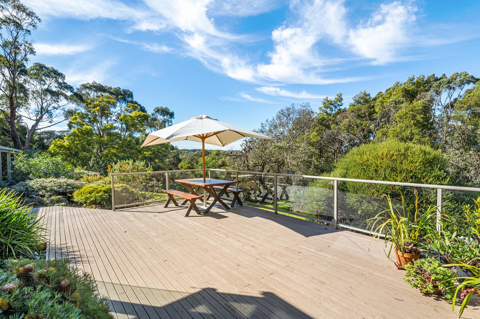 Extending from the double-glazed living area, a sunroom looks across bushland while the wraparound deck offers an expansive setting for entertaining, elevated above the landscape with serene views across the dam.