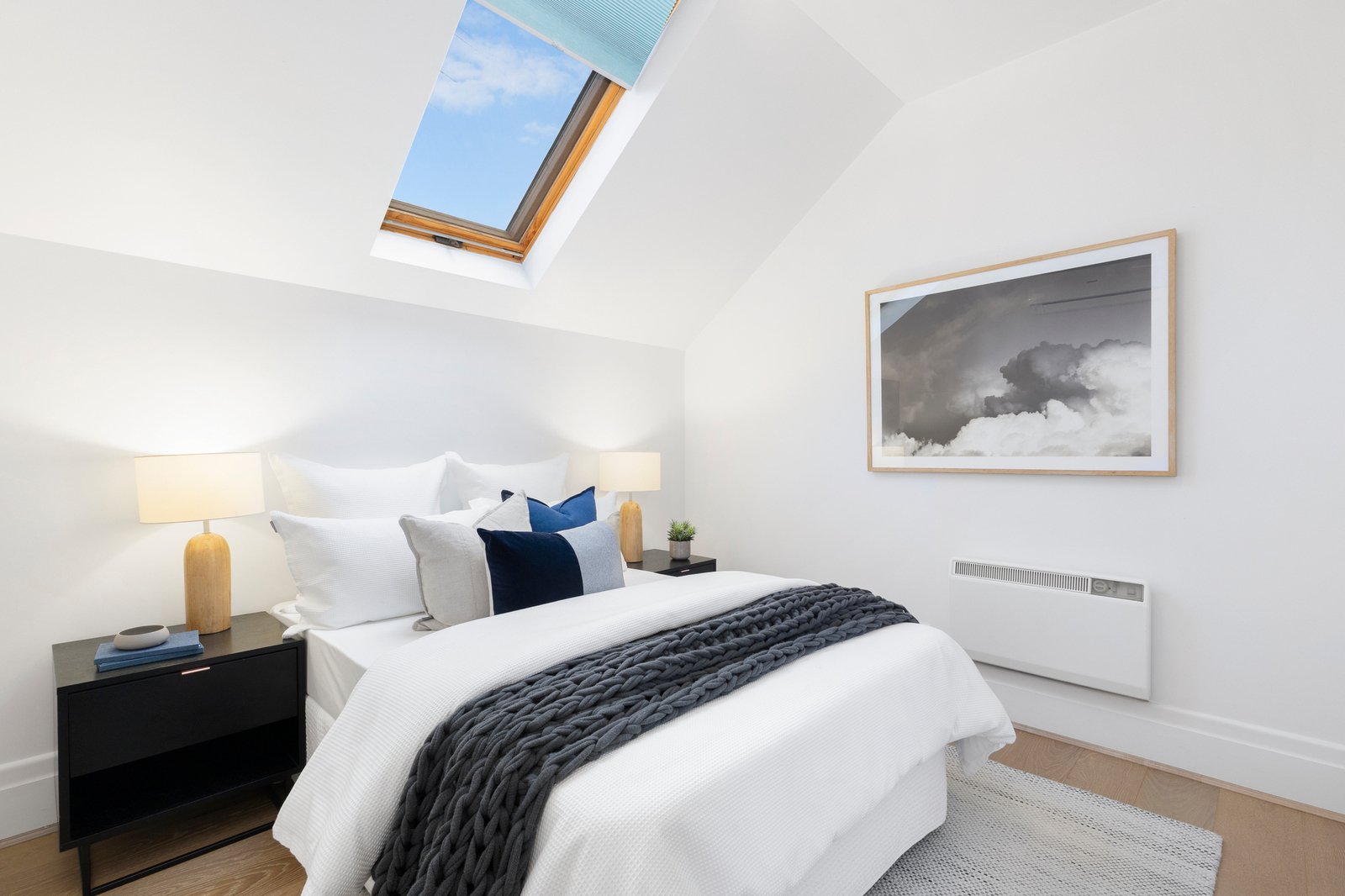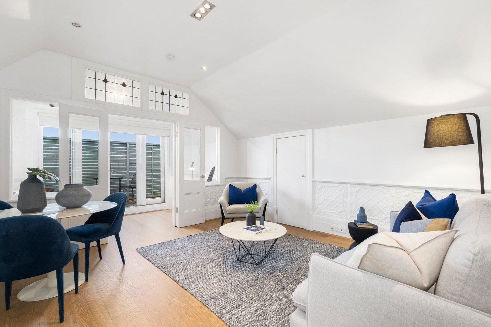 Occupying the entire rear of the first floor in a large, beautifully converted period residence hosting just three apartments, this light-filled accommodation enjoys a superb sense of peace, privacy and independence with abundant natural light and leafy neighbourhood views throughout. A cleverly designed stone/stainless-steel kitchen with gas cooktop, oven and dishwasher complements an impressively generous living and dining domain that flows to a delightful adjoining study or reading room, ideal for working from home, and out to a secluded decked balcony, an inviting retreat to unwind in complete tree-top privacy. The stylish bathroom elevates everyday rituals, serving a spacious double bedroom featuring twin BIRs beneath a bright window skylight.