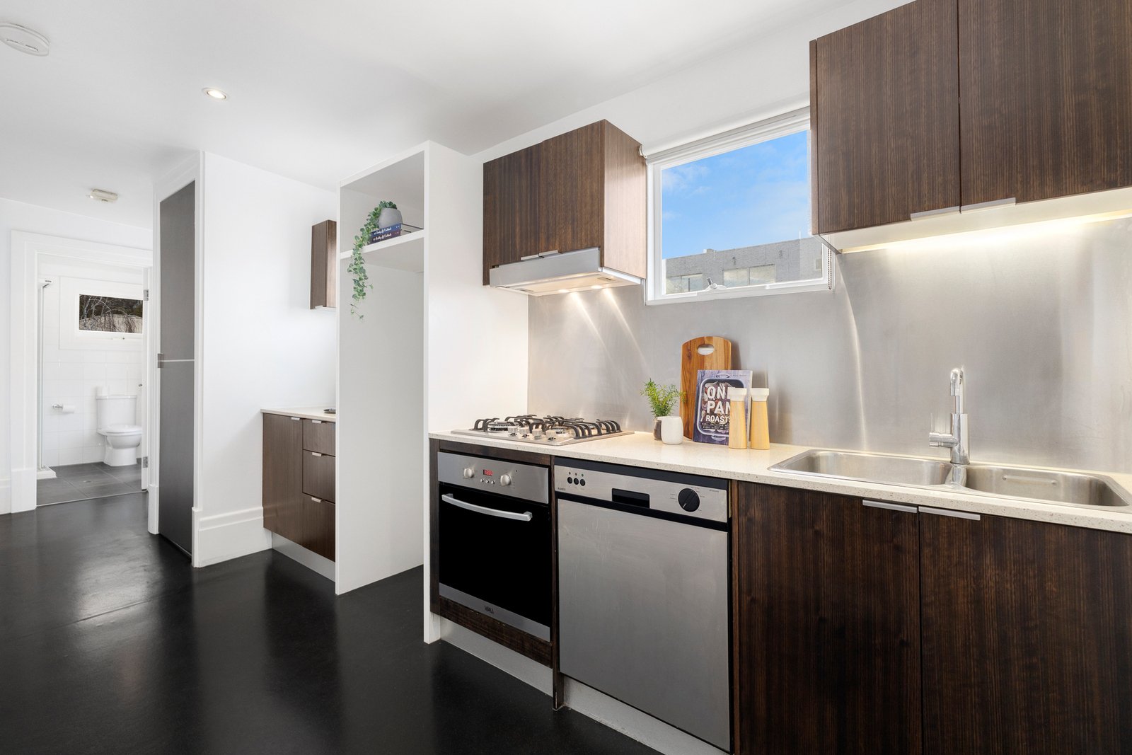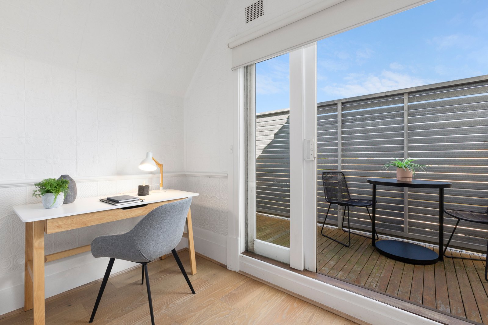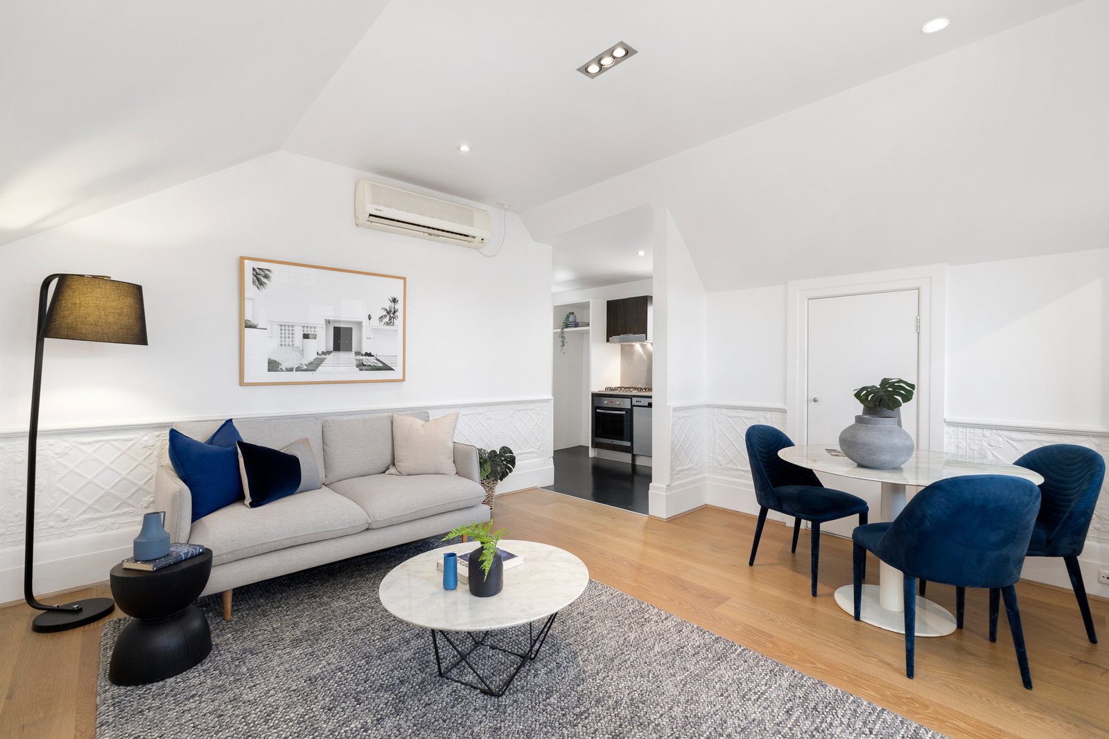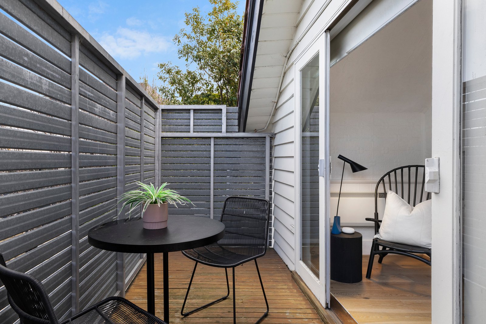 Full of romantic period charm in a quiet crescent on prized St Kilda Hill, this rare single bedroom plus study apartment is truly a haven of calm, character and complete privacy surrounded by every St Kilda amenity. Utterly captivating from its grand staircase entry to its leadlight windows, pressed metal detail and storybook attic ceilings, its cleverly designed spaces combine the elegance of the era with immaculate modern functionality perfect for easy lock-up-and-leave living.