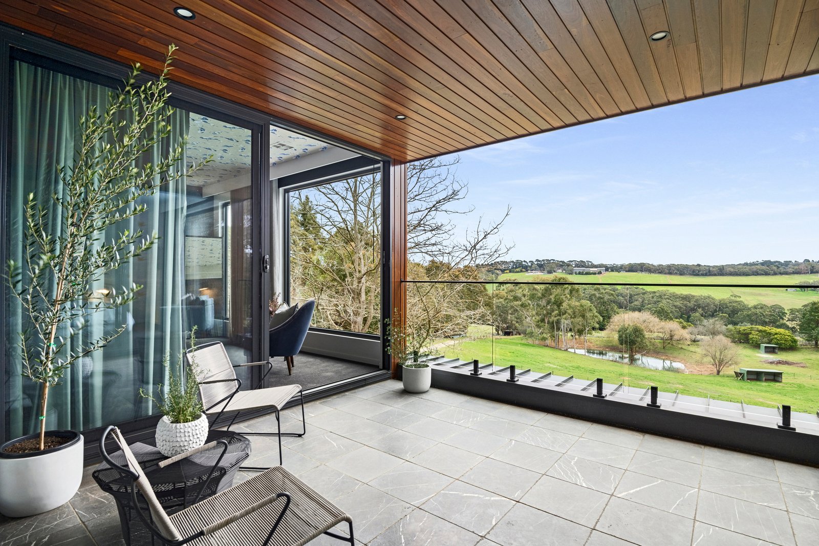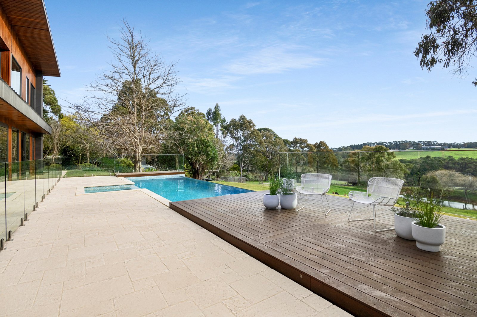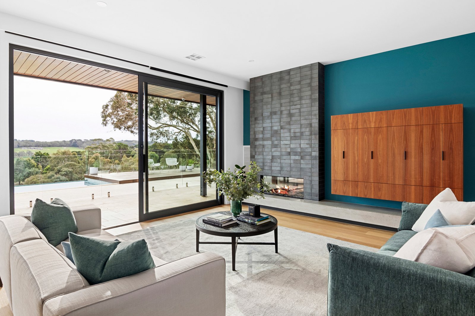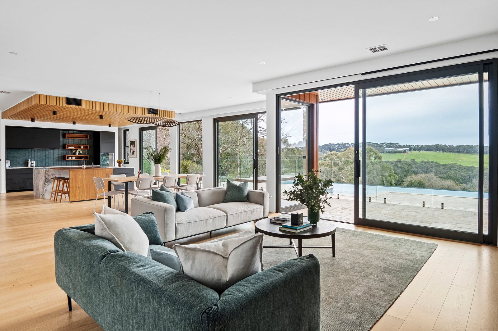 A bold exhibition of contemporary design, ‘Wirruna’ rises from a privileged position on Red Hill’s iconic wine and dining trail. Framed by 17.5 acres (approx) of hinterland and vines, sculptural bushland and the untamed beauty of Stony Creek with its private waterfall, stunning rural outlook and incredible sunsets creating an extraordinary natural stage. Recently created across two striking levels, the design layers an expressive catalogue of colour and texture with engineered floors and soaring ceilings, achieving both cohesion and a sense of monumental scale within its well-zoned floorplan.
