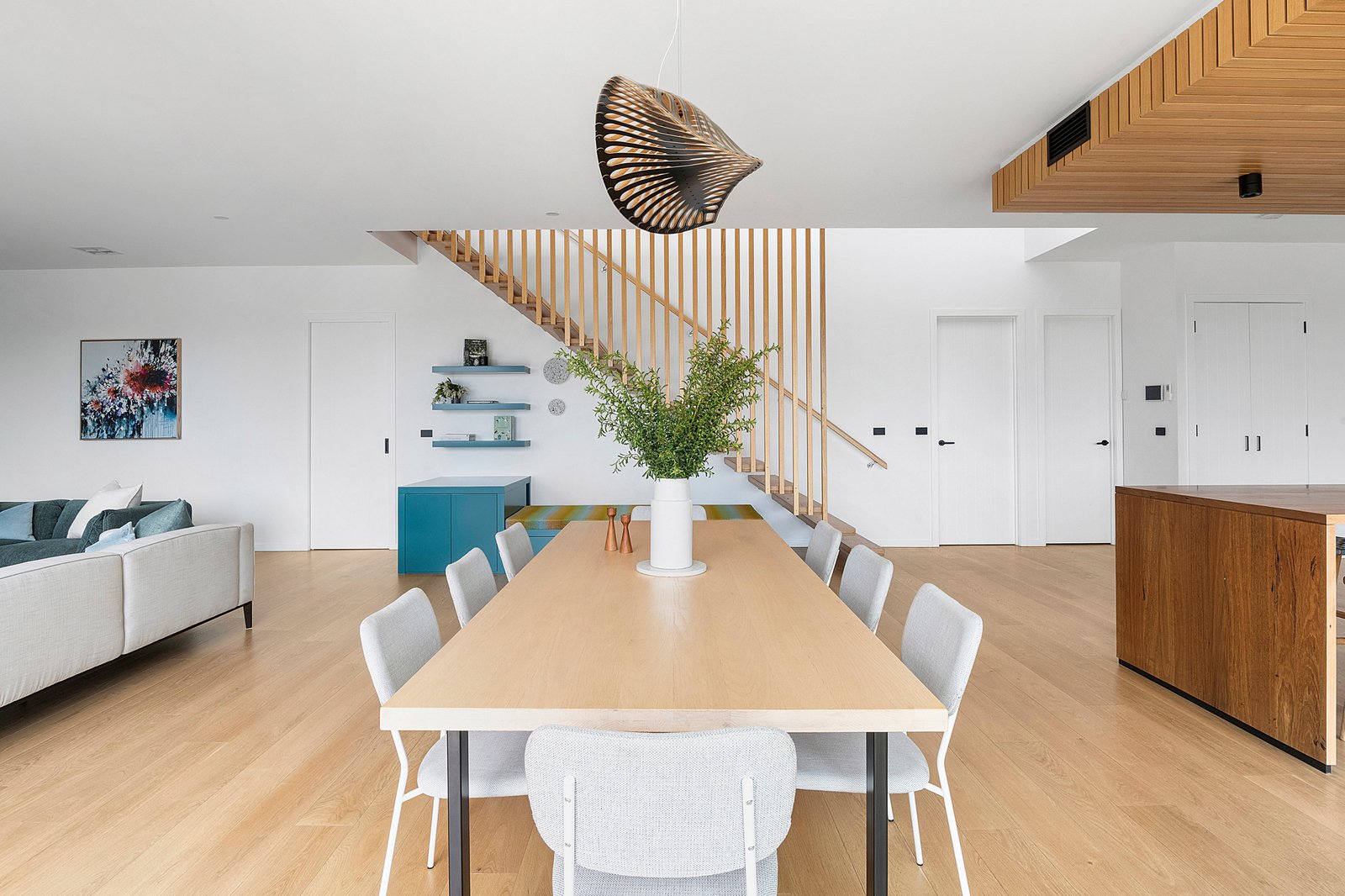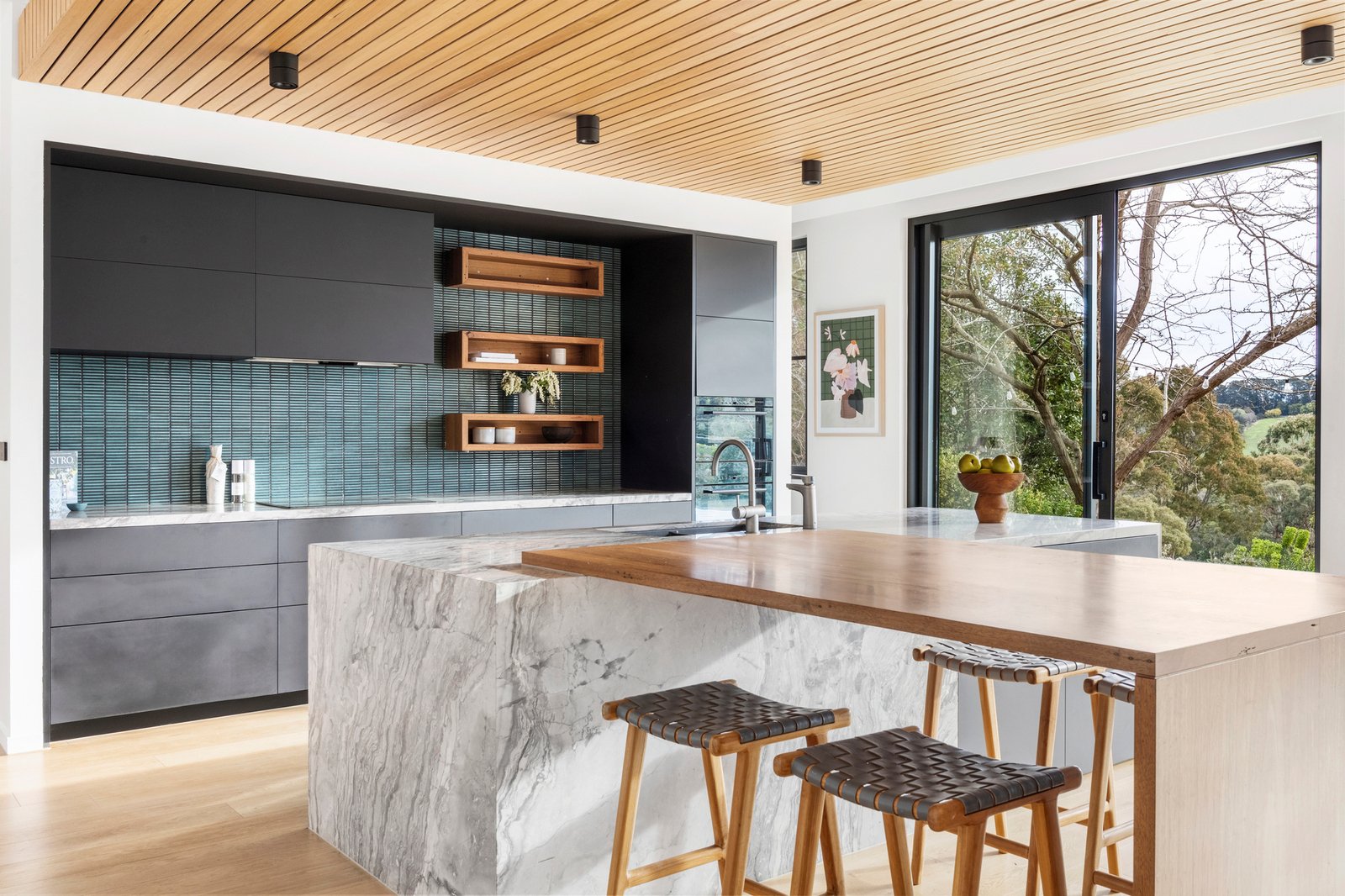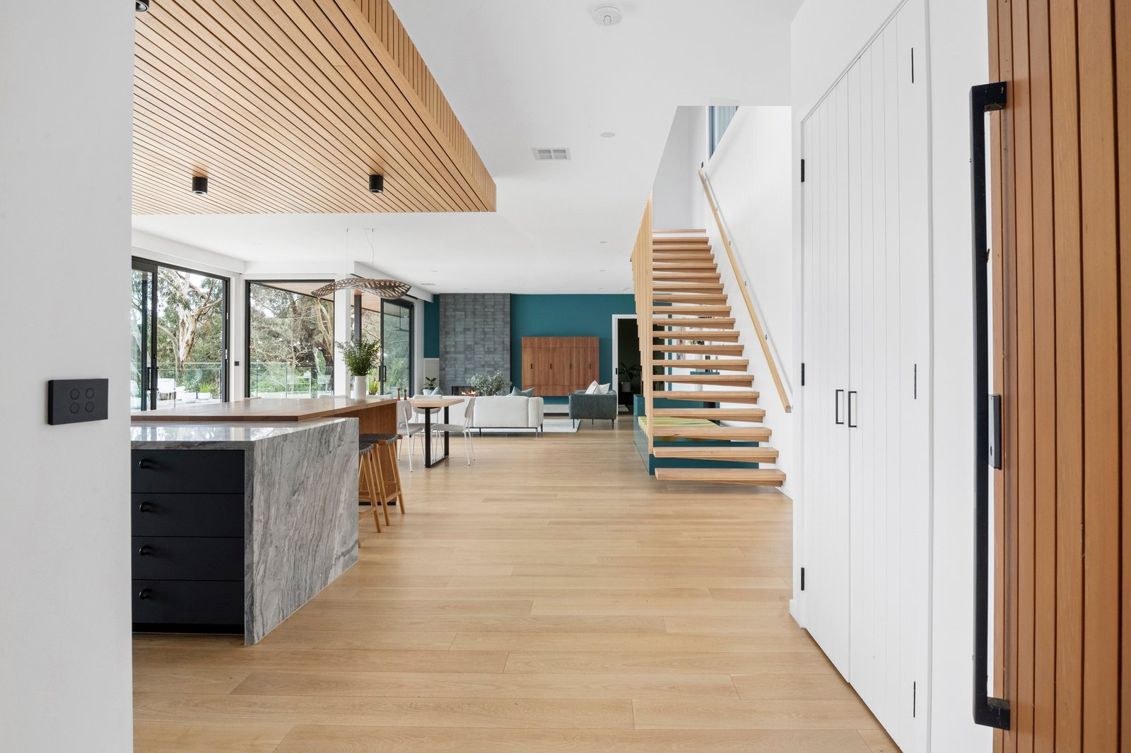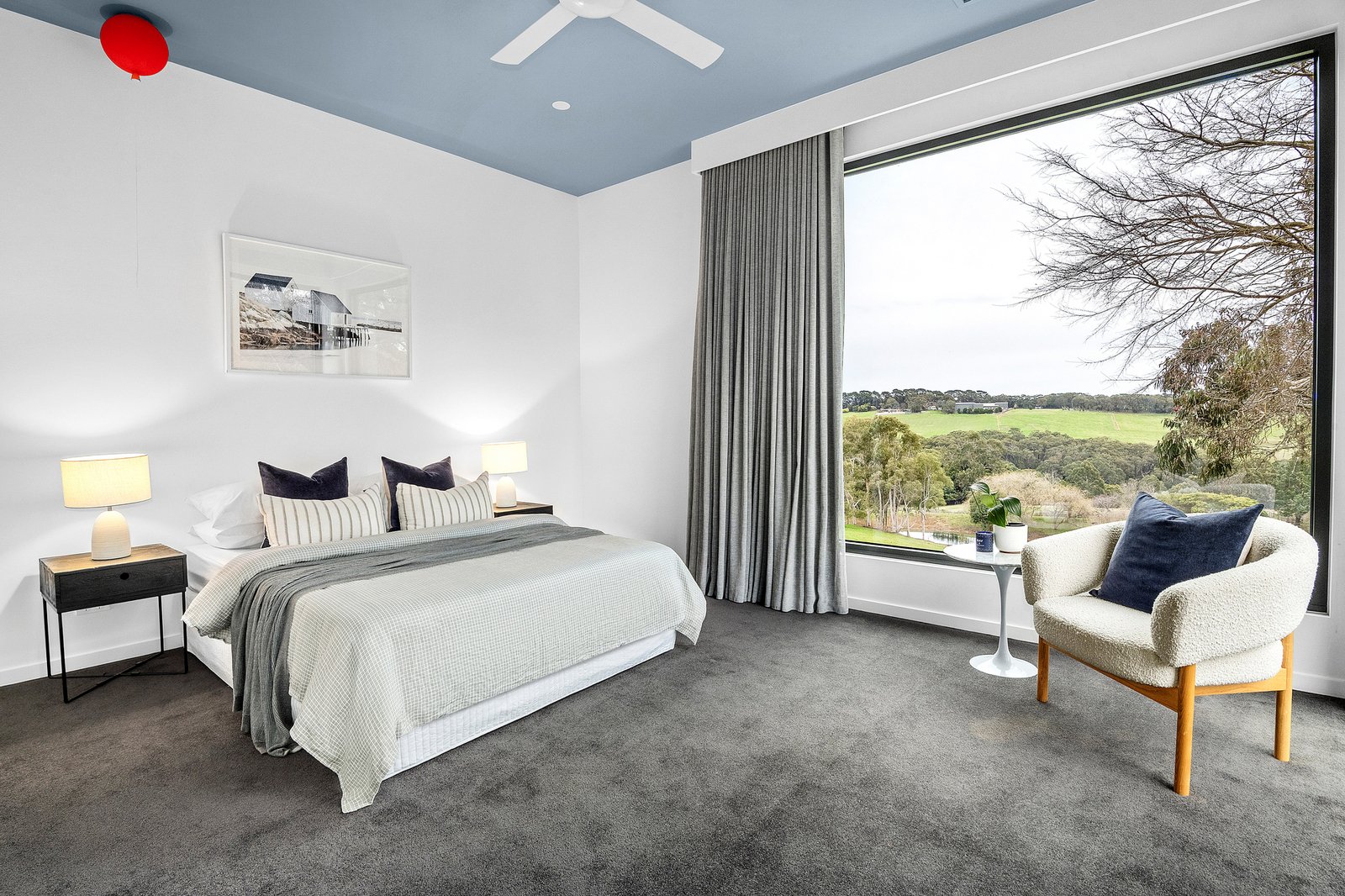 A bold exhibition of contemporary design, ‘Wirruna’ rises from a privileged position on Red Hill’s iconic wine and dining trail. Framed by 17.5 acres (approx) of hinterland and vines, sculptural bushland and the untamed beauty of Stony Creek with its private waterfall, stunning rural outlook and incredible sunsets creating an extraordinary natural stage. Recently created across two striking levels, the design layers an expressive catalogue of colour and texture with engineered floors and soaring ceilings, achieving both cohesion and a sense of monumental scale within its well-zoned floorplan.