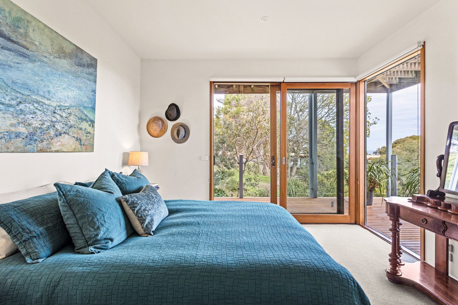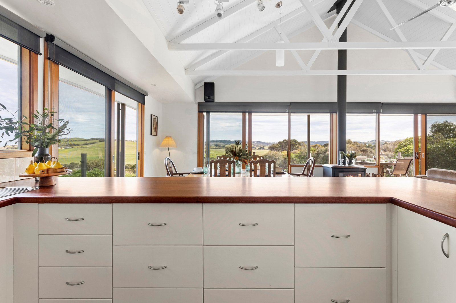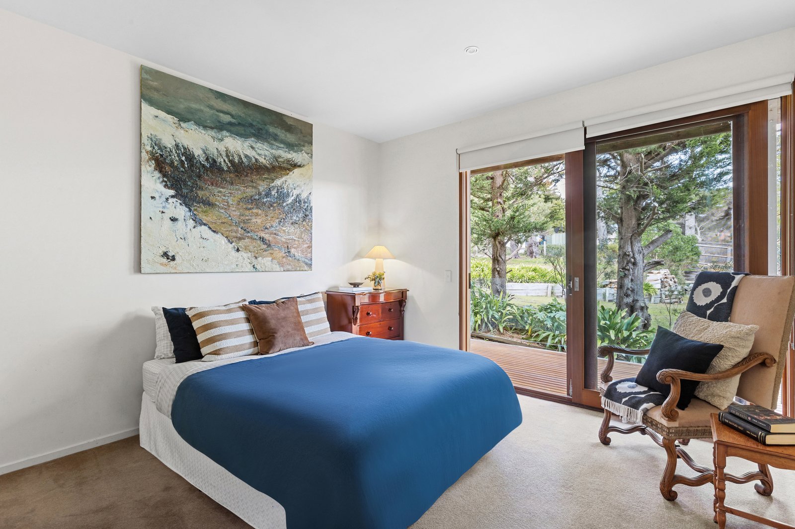 Elevated in a peaceful Flinders cul-de-sac and brilliantly oriented to capture the natural beauty of Bass Strait and the undulating countryside, this four bedroom residence reflects an early commitment to sustainability through an honest material palette that remains resonant today. Only 500 metres from the sand and Flinders Golf Course and a short, flat walk to cafes and essentials at the village, it offers a slower paced lifestyle on 2,786 sqm (approx) in tune with the peace of its setting.