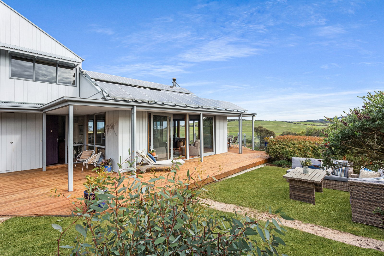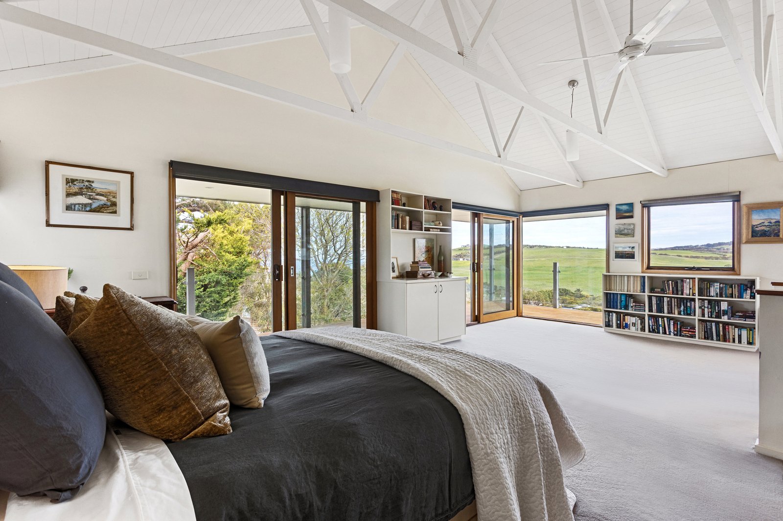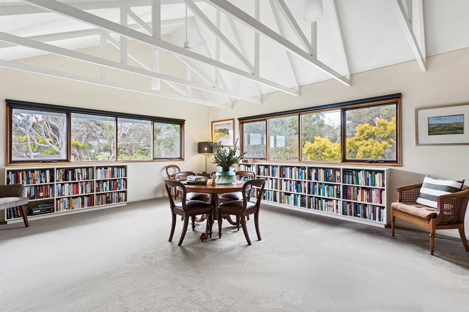 Elevated in a peaceful Flinders cul-de-sac and brilliantly oriented to capture the natural beauty of Bass Strait and the undulating countryside, this four bedroom residence reflects an early commitment to sustainability through an honest material palette that remains resonant today. Only 500 metres from the sand and Flinders Golf Course and a short, flat walk to cafes and essentials at the village, it offers a slower paced lifestyle on 2,786 sqm (approx) in tune with the peace of its setting.
