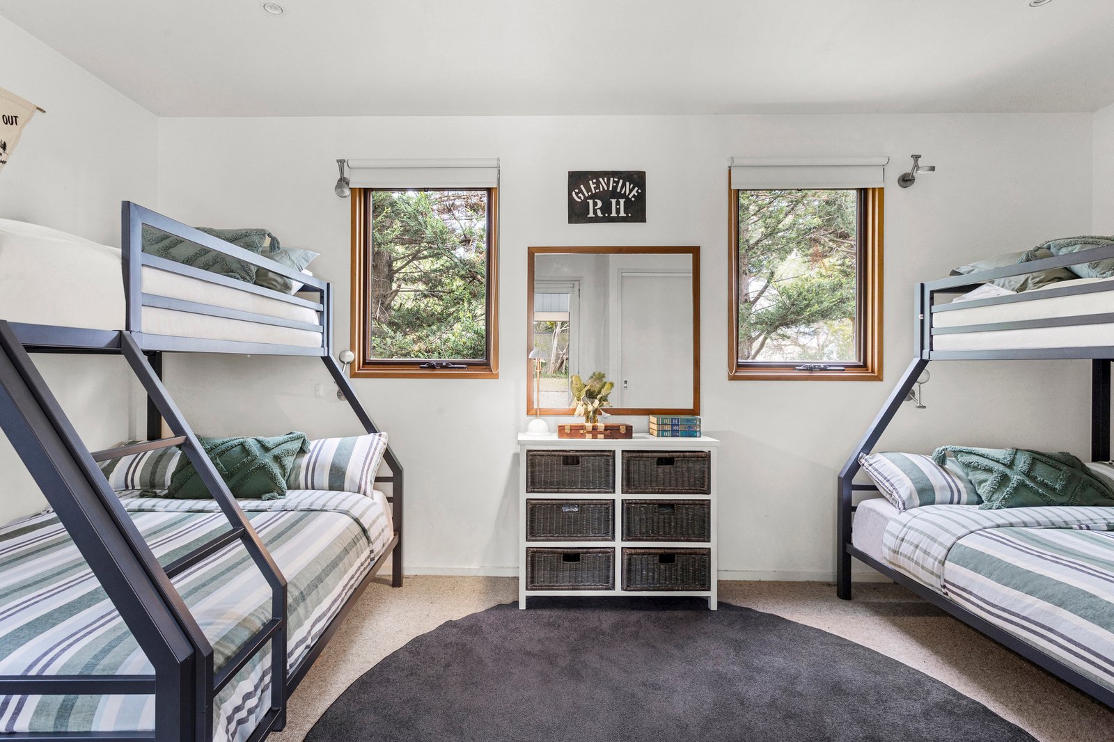An ultimate retreat, the upper-level embraces sweeping outlooks and an expansive sense of scale, with a primary suite spilling onto a private deck, complemented by a walk-in robe, ensuite and a versatile parent's retreat/library, its size allowing endless flexibility to update or tailor to personal needs. Downstairs, two additional robed bedrooms are arranged alongside a bathroom, while the bunk room offers flexibility as a fourth bedroom, guest accommodation or as a dedicated home business space with the advantage of its own separate entry.