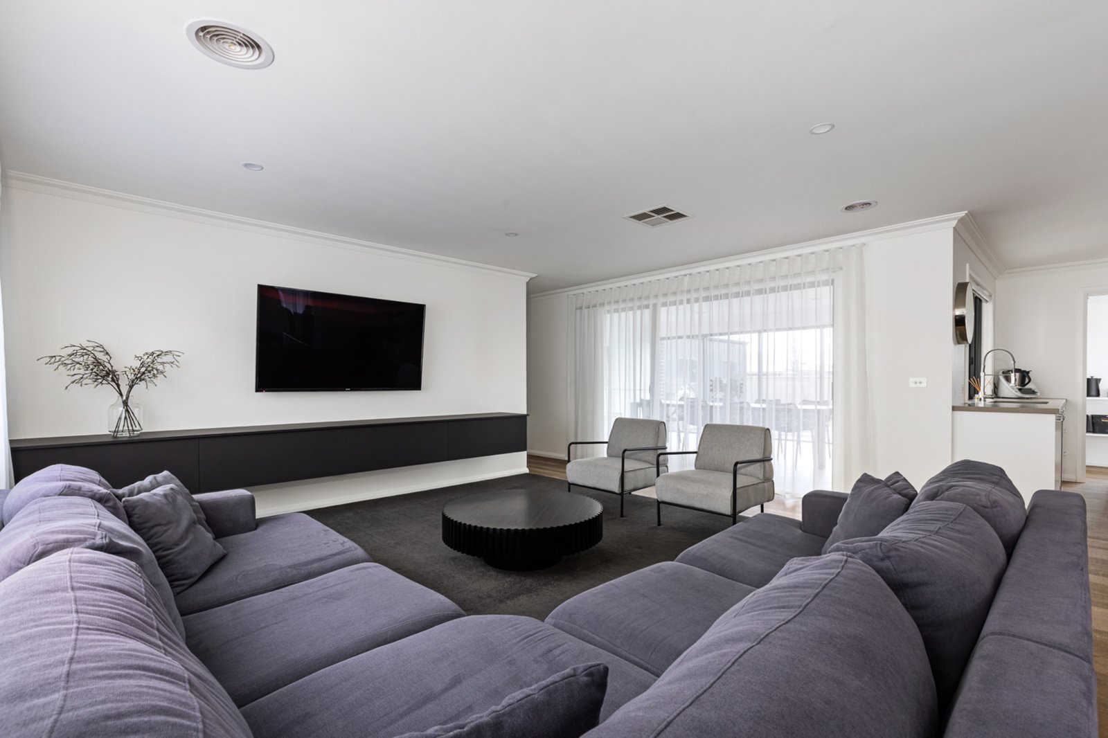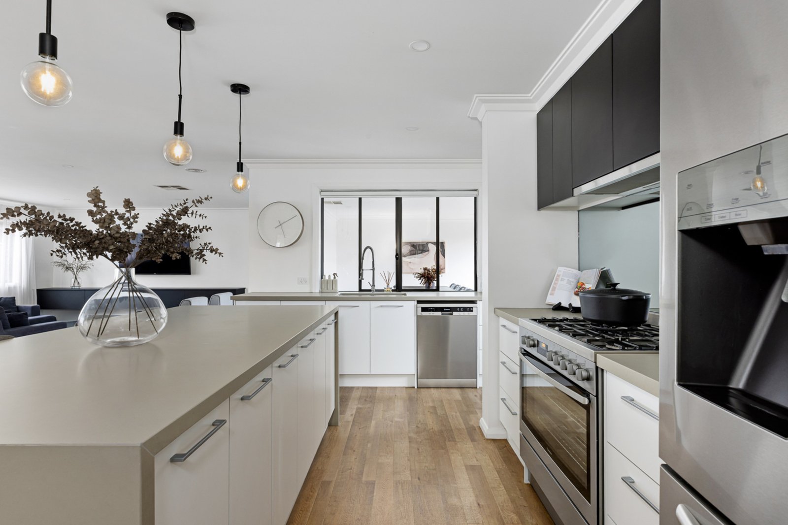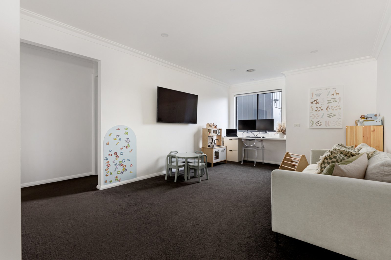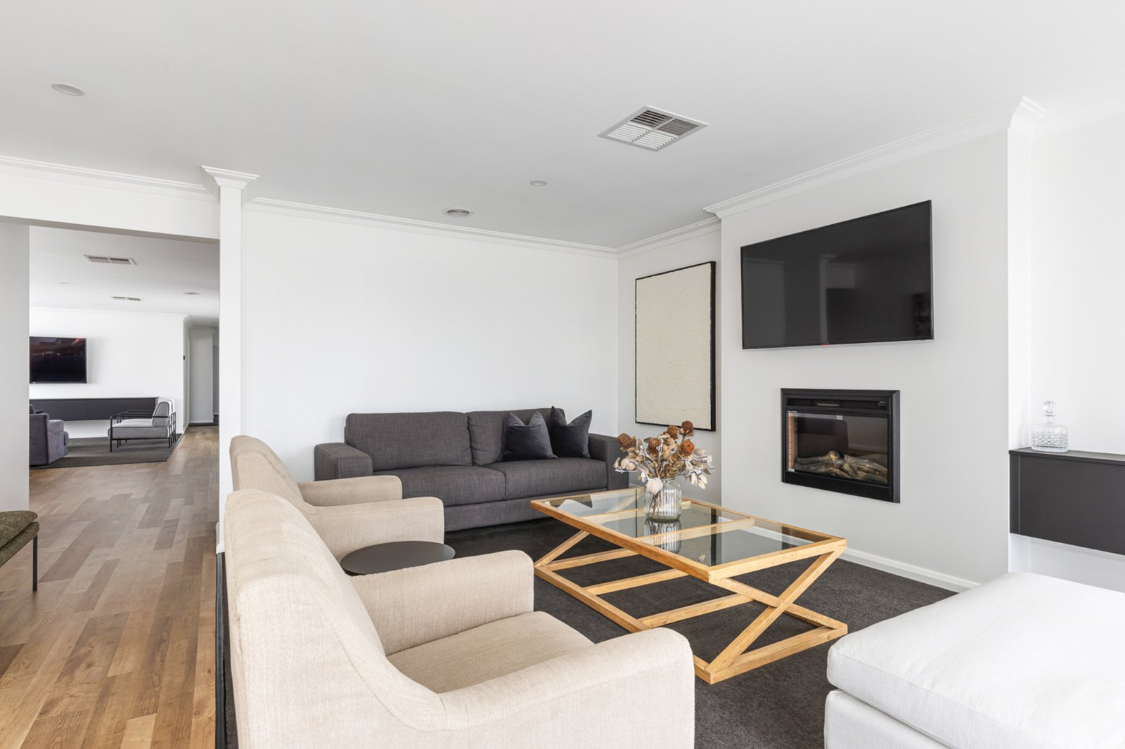 Catering for families of all sizes, the property offers four spacious bedrooms plus a dedicated study. The king-sized master suite is a private retreat with an oversized walk-in robe and a luxurious ensuite. Additional living zones include a kids’ playroom complete with built-in cabinetry, a study nook, and multiple lounge areas, ensuring everyone has their own space.