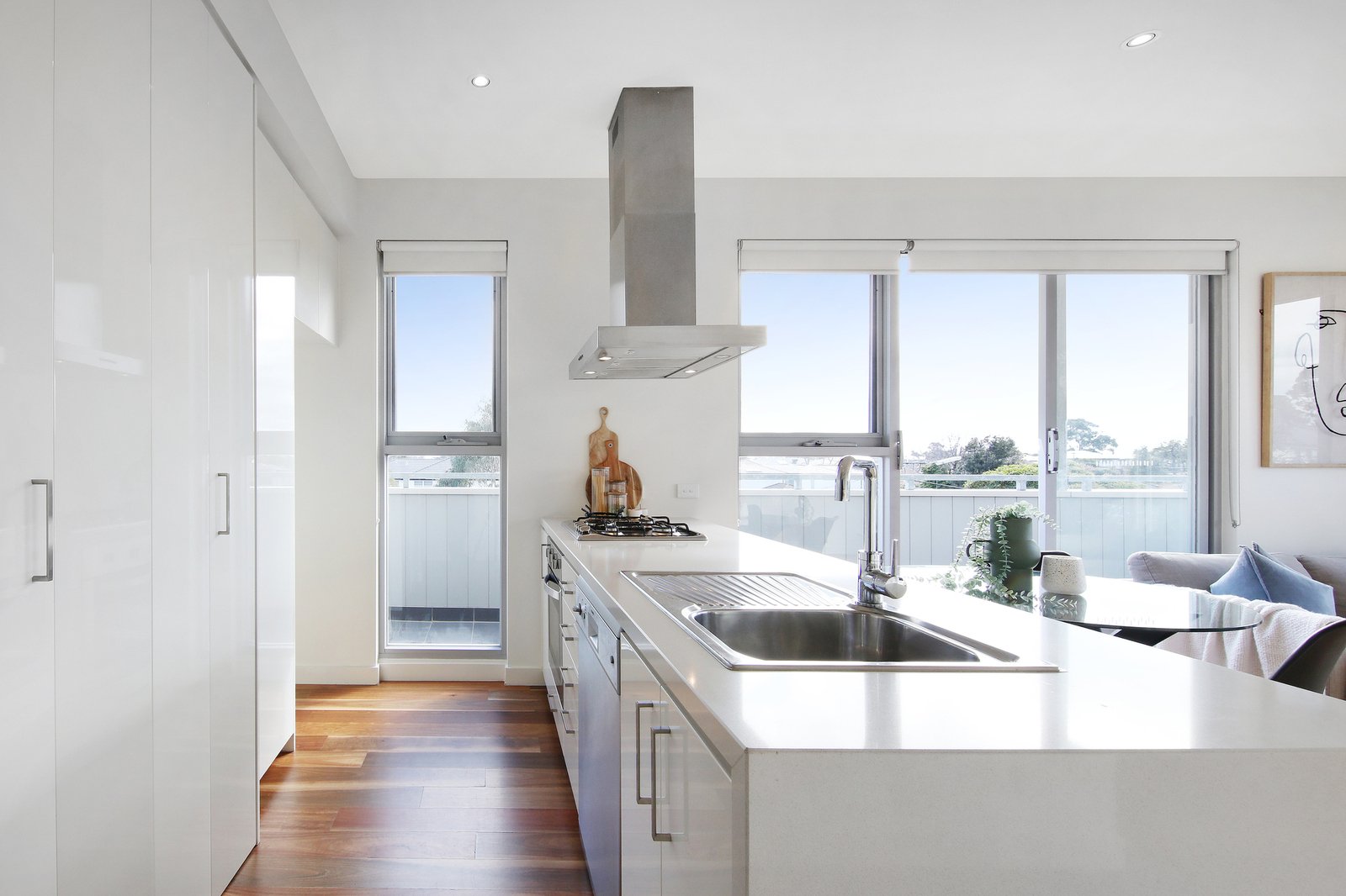 Styled with sleek stone benchtops, rich Australian hardwood floors and premium carpets, this top apartment shines with floor-to-ceiling bathroom tiling, tall built-in robes, streamlined blinds and a discreet European laundry. With individual reverse-cycle climate-control to every room, video-intercom to lobby-entry, and lift-access to basement garaging with storage, there are all the rewards of penthouse life... all in reach!