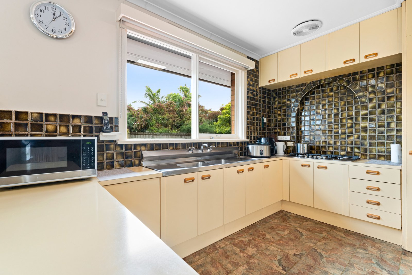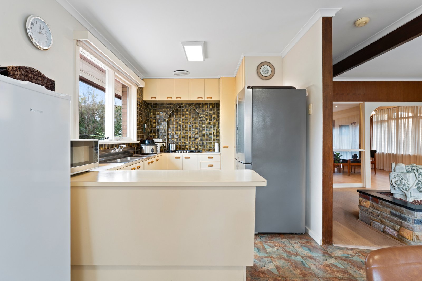 Introduced by a return driveway and advantaged by dual crossovers, this time-honoured treasure reveals spacious lounge and dining rooms, accompanied by a retro-style kitchen/meals area – all graced with charm and character.