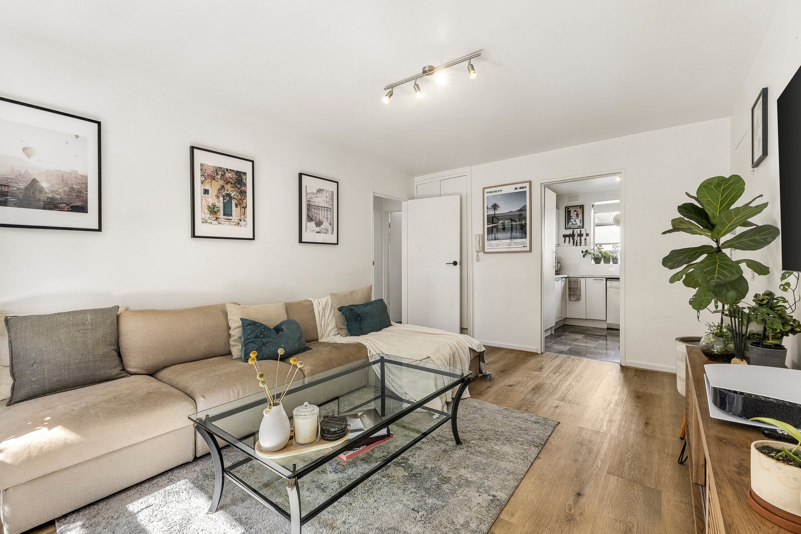 With Melbourne’s best cafés, bars, restaurants and boutique shopping within walking distance, the home combines style, convenience, and enduring appeal. The kitchen is well-appointed with abundant bench space, modern cabinetry, room for a dining table, flowing seamlessly into a spacious lounge that opens to a sun-drenched balcony.