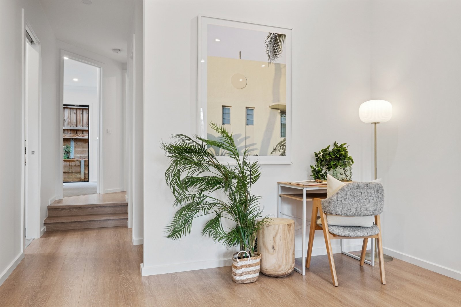North-facing and flowing over two levels, the home's welcoming introduction begins with a bright lounge room that's detailed with sleek flooring and accompanied by two carpeted bedrooms, both with mirrored built-in-robes and sliding door access out to the rear courtyard.