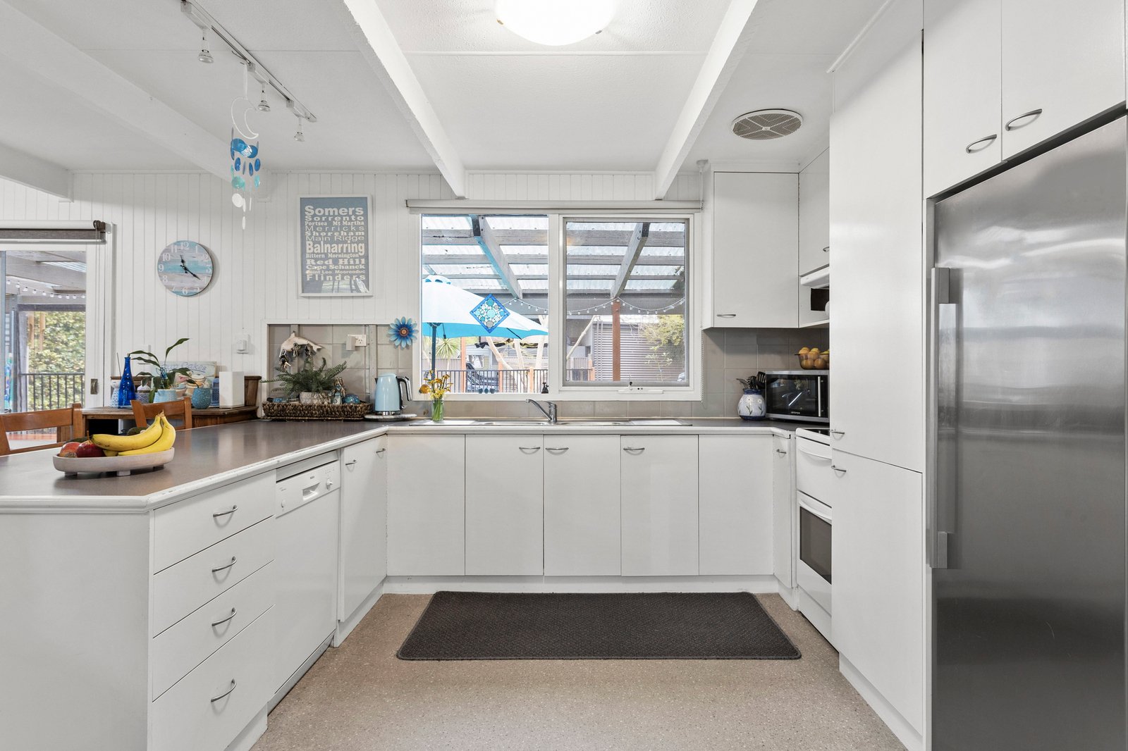 Harnessing an 841 sqm (approx) flat corner block just 700 (approx) metres from the serenity of the shoreline, this classic Balnarring beach house presents an enviable lifestyle where daily routines mirror holiday rituals of coffee from Tulum Store, afternoons at nearby parks and playgrounds and a sunrise paddle or surf, in a pocket that captures all the hallmarks of coastal living without the chaos of a crowd.