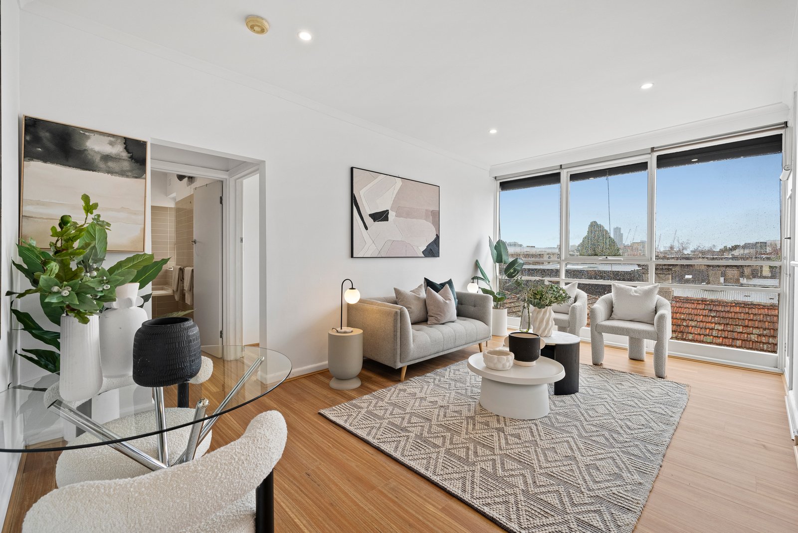 Positioned peacefully on the top floor, this north-facing one-bedroom apartment offers a refined contemporary lifestyle in the heart of Windsor. Upon entry, you’ll find a modern, well-appointed kitchen and a spacious, sunlit open-plan living and dining area, washed by natural light and framed by sweeping vista views. A private balcony offers a peaceful spot for relaxation, while the generously-sized bedroom features wall-to-wall windows and a built-in robe. The neat bathroom also includes convenient laundry facilities.