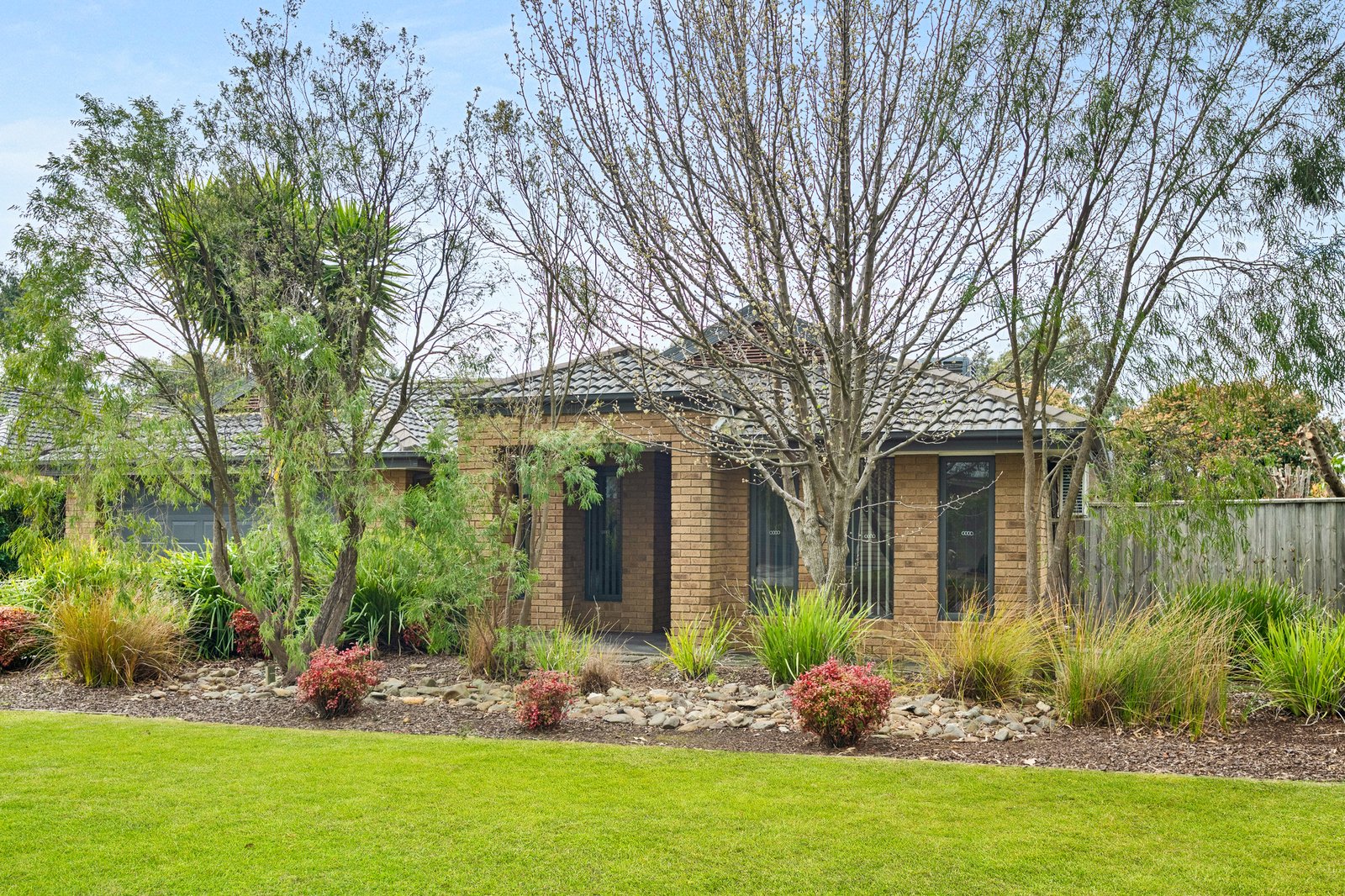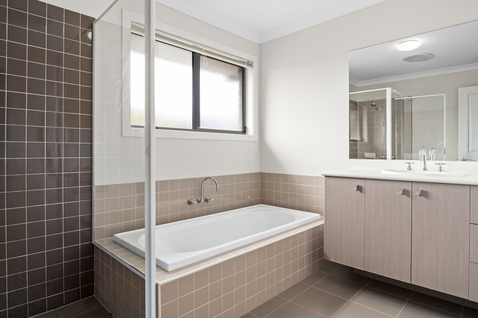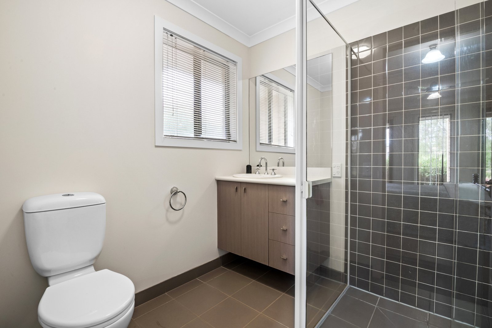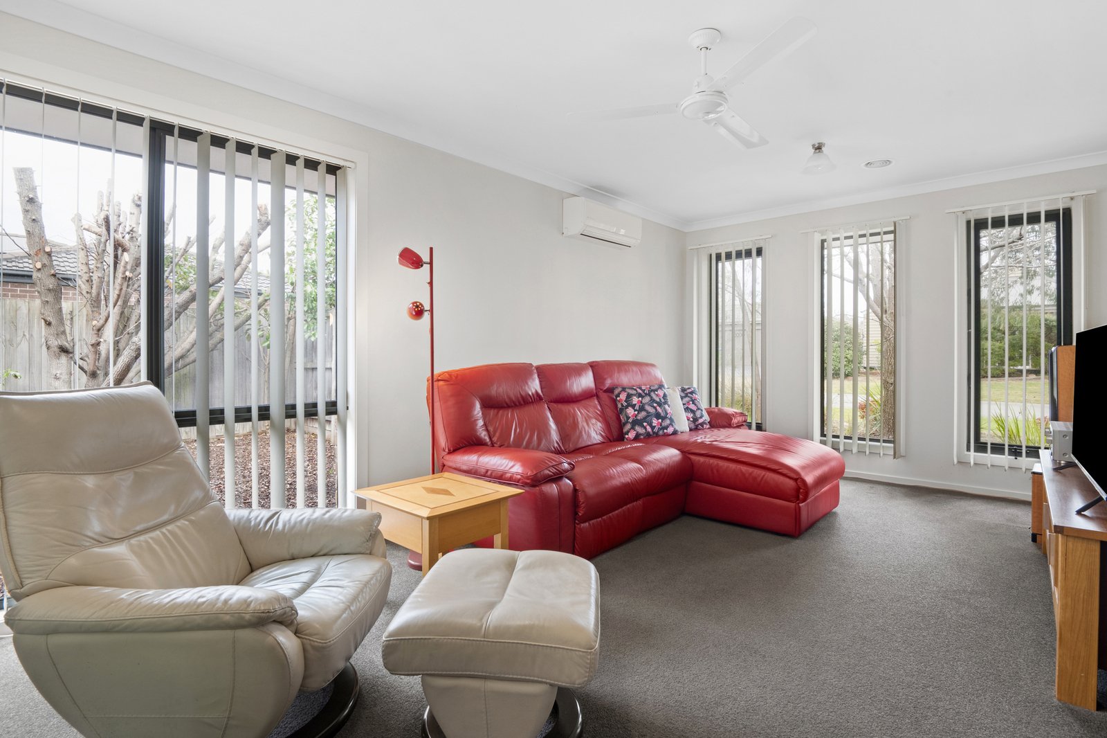 Drawing in light and garden aspects through a trio of vertical windows, the main bedroom with walk-in robe and private ensuite is paired with a neighbouring lounge to create a distinct retreat for parents. Three additional bedrooms with built-in robes are graciously arranged along a dedicated hallway, sharing a central bathroom with a separate WC, complemented by ducted heating, split systems and a remote double garage with rear roller door.