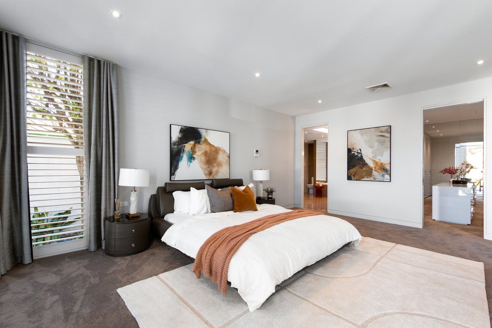 Upstairs, four robed bedrooms cater for the family’s accommodation needs and include a magnificent master suite with balcony, dressing room and an opulent dual vanity ensuite, while the remaining bedrooms are served by a private ensuite, shared 3rd ensuite plus a powder room and laundry with drying cupboard.
