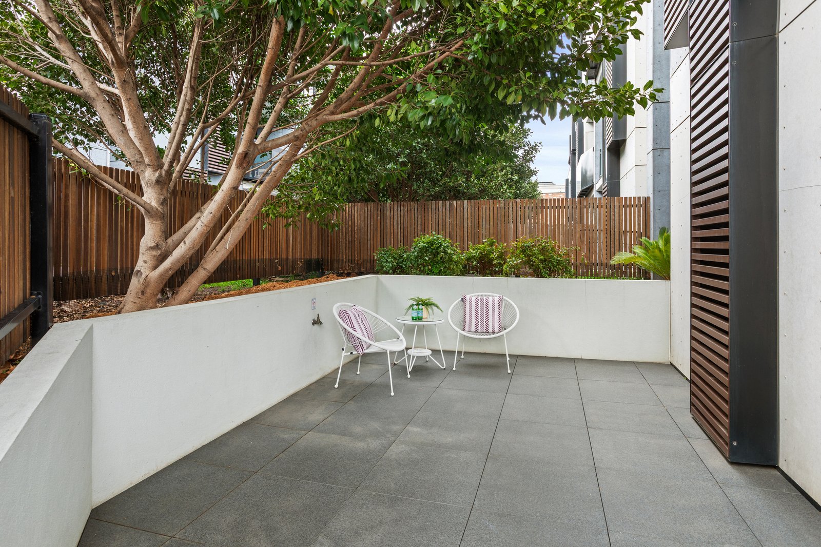 Step outside into an expansive, sun-splashed alfresco courtyard—perfect for relaxed entertaining or tranquil morning coffees. Interior appointments include a vogue bathroom with floor-to-ceiling tiling and a sleek walk-in shower, a grand master bedroom boasting built-in robes and a handy study nook, plus a second generous double bedroom with built-in storage.