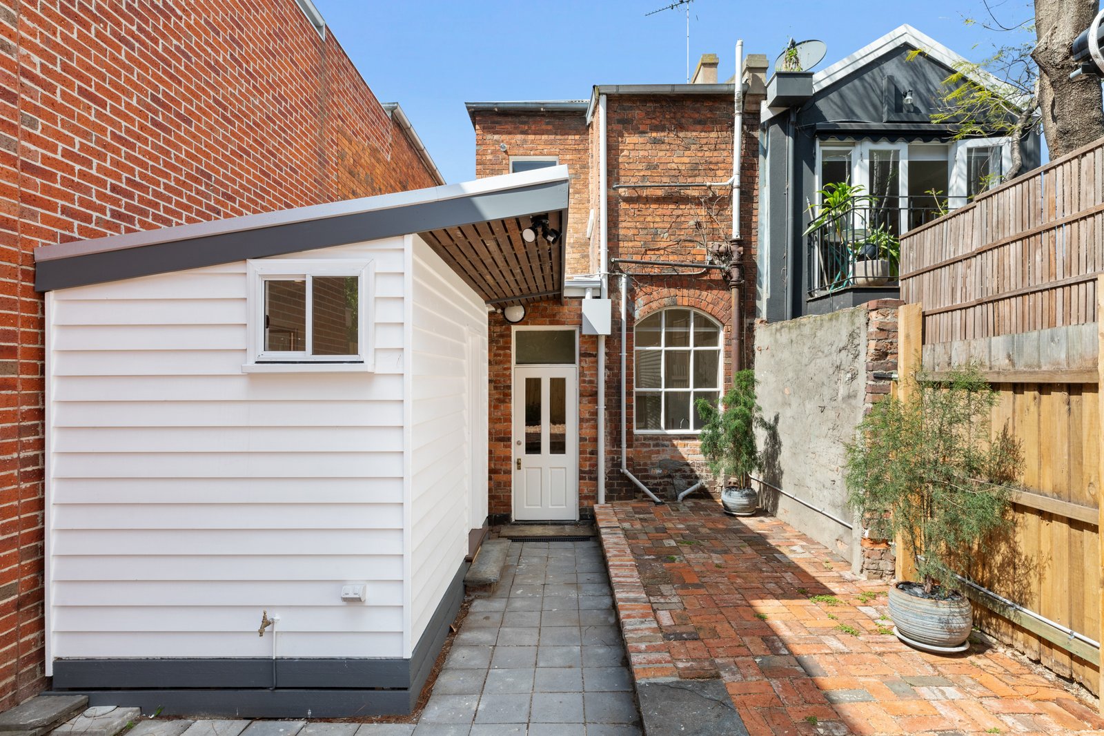 The earthy designed rear courtyard offers off street parking with automatic roller door and the enjoyment of a low maintenance outdoor space. Parking permits for street parking are also accessible from Port Phillip Council.