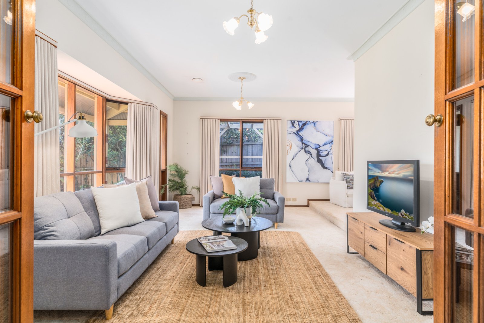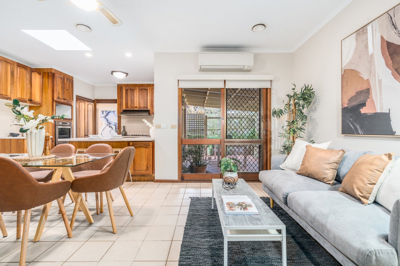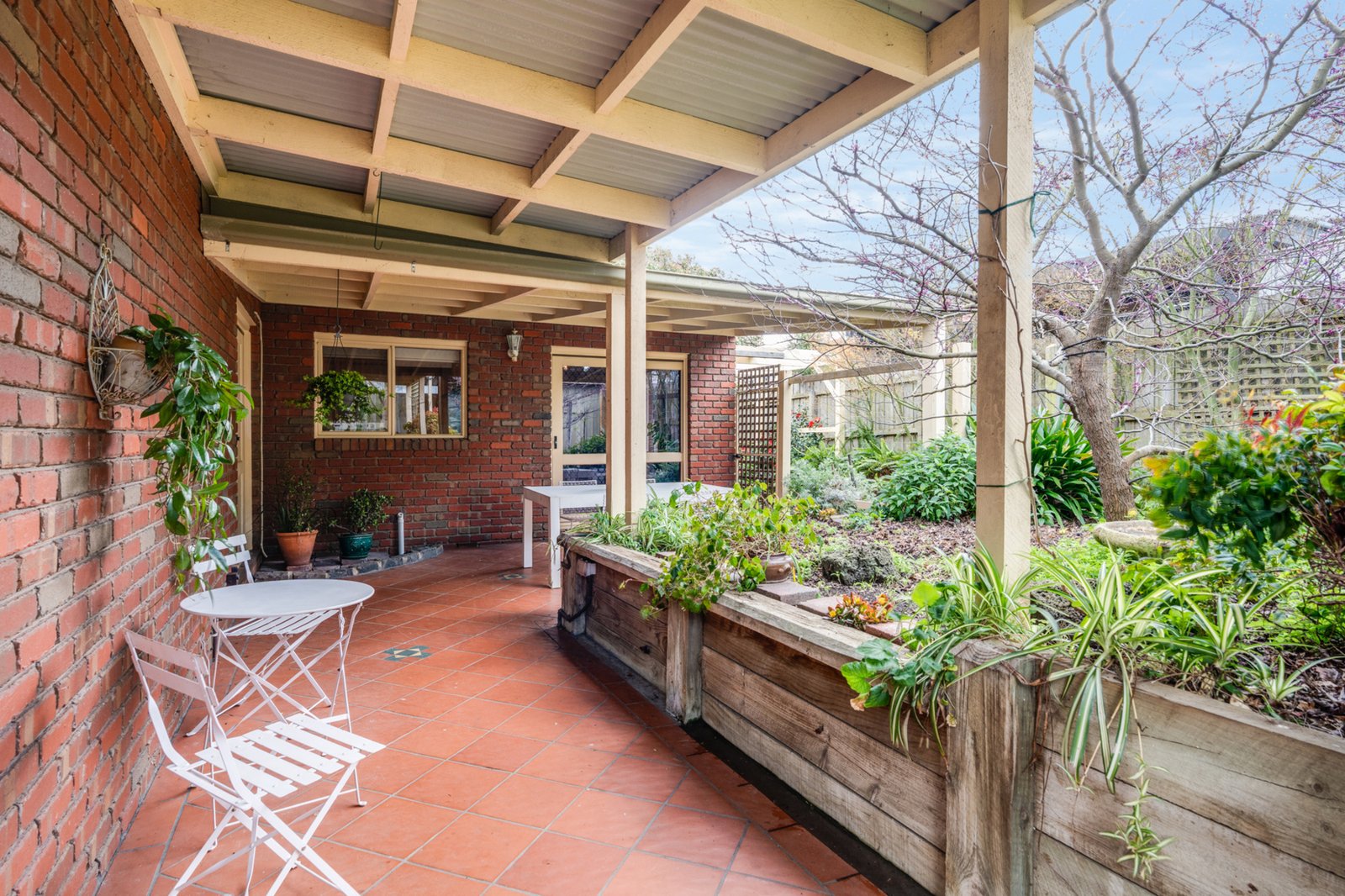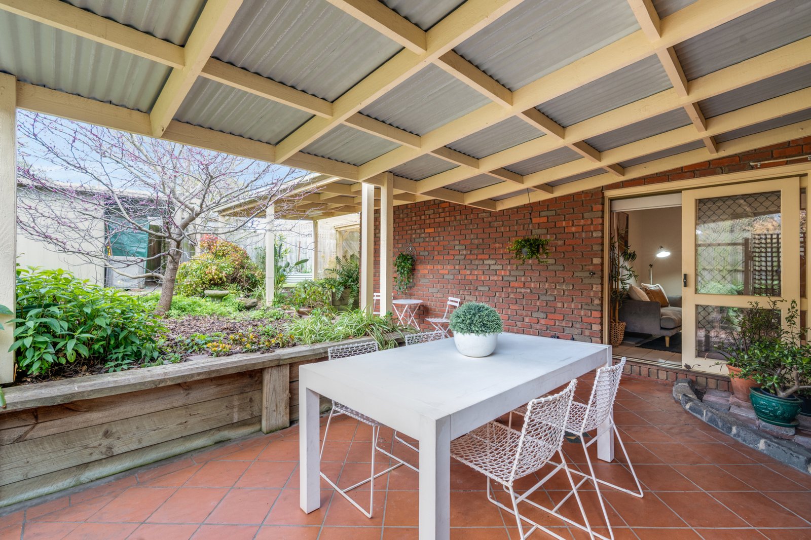 The rear of the property opens to a well-maintained garden and a covered outdoor area, ideal for hosting gatherings or enjoying a quiet morning coffee while soaking up the serene surroundings.