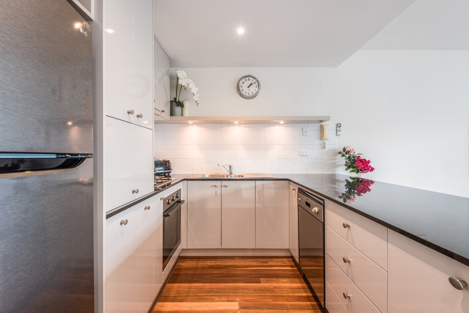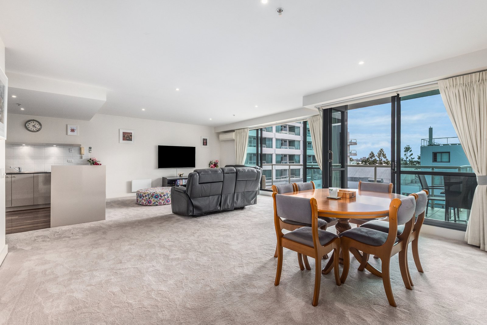 Entry to the apartment reveals a spacious, light-filled open plan living area, with large picture windows and glass sliders creating an effortless indoor-outdoor connection, with a beautiful backdrop of views to the bay. The elegant kitchen features stone benchtops, quality appliances including Westinghouse 600mm oven, gas cooktop, Blanco dishwasher, and excellent storage provisions. Positioned to overlook the dining space and out to the balcony, the layout is designed for functional everyday living and easy entertaining. The north facing balcony offers the perfect space to enjoy your morning coffee or evening wine, while taking in the vibrant atmosphere of the complex and spectacular scenery of your bayside surrounds.