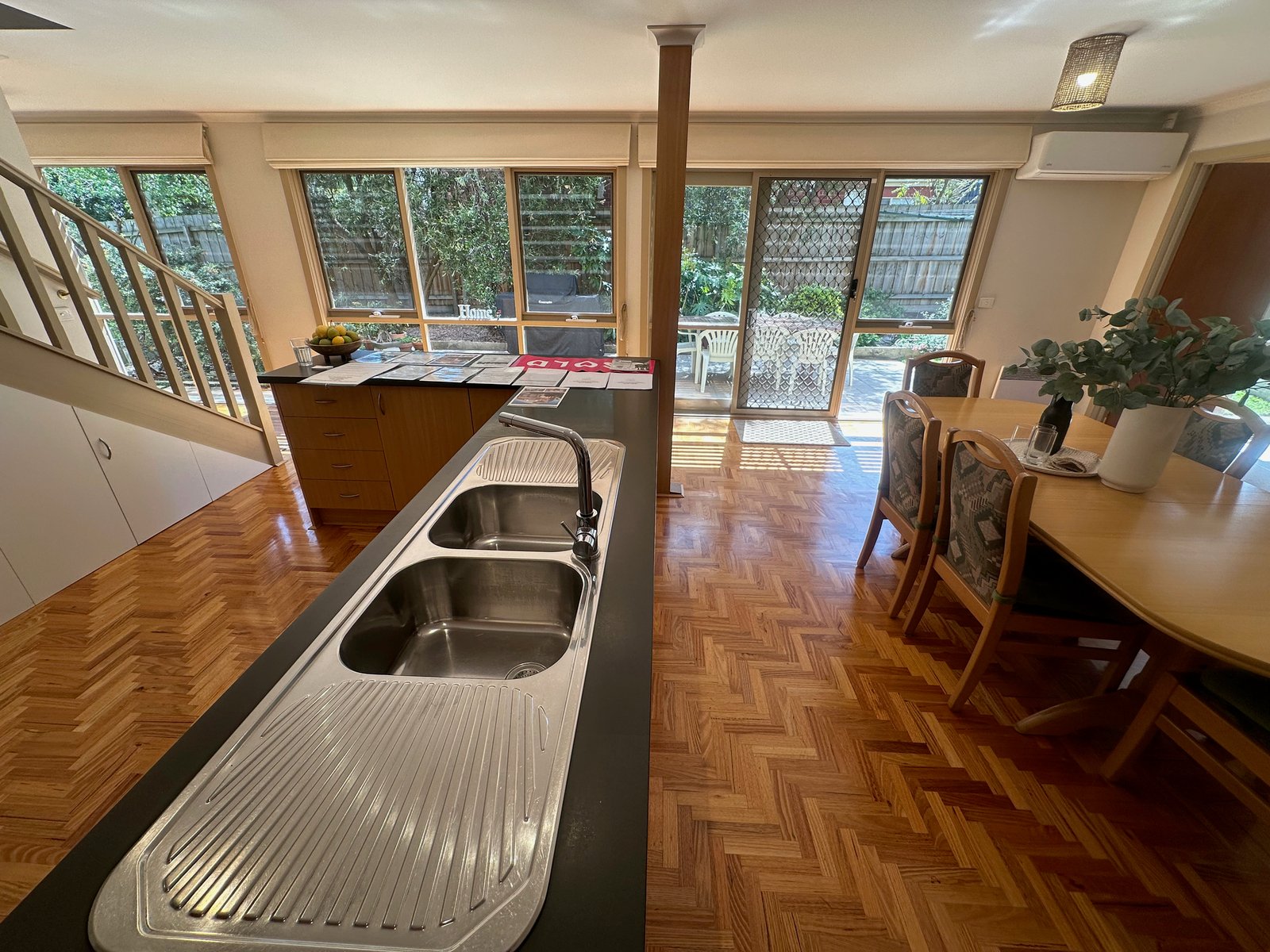 Set within beautiful established gardens, providing a lifestyle of peace and tranquillity, this unique family home offers abundant accommodation, a modern persona and promotes sustainable and energy efficient living. A combination of timeless elegance and contemporary style defines the light-filled interior, which has been designed to maximise cross-ventilation throughout. Gleaming parquetry flooring introduces welcoming spaces, with separate living and dining rooms served by an immaculate kitchen boasting ample storage.