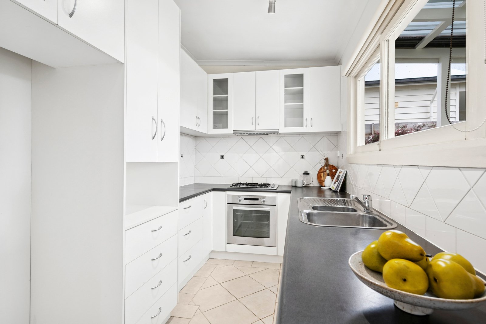 The kitchen and dining area is bathed in natural light, the elegant kitchen featuring modern appliances including 600mm electric oven, gas cooktop, dishwasher and ample storage. Positioned to overlook the backyard, the layout allows for easy indoor-outdoor entertaining and offers the perfect vantage point to keep an eye on the kids or pets at play in the backyard.