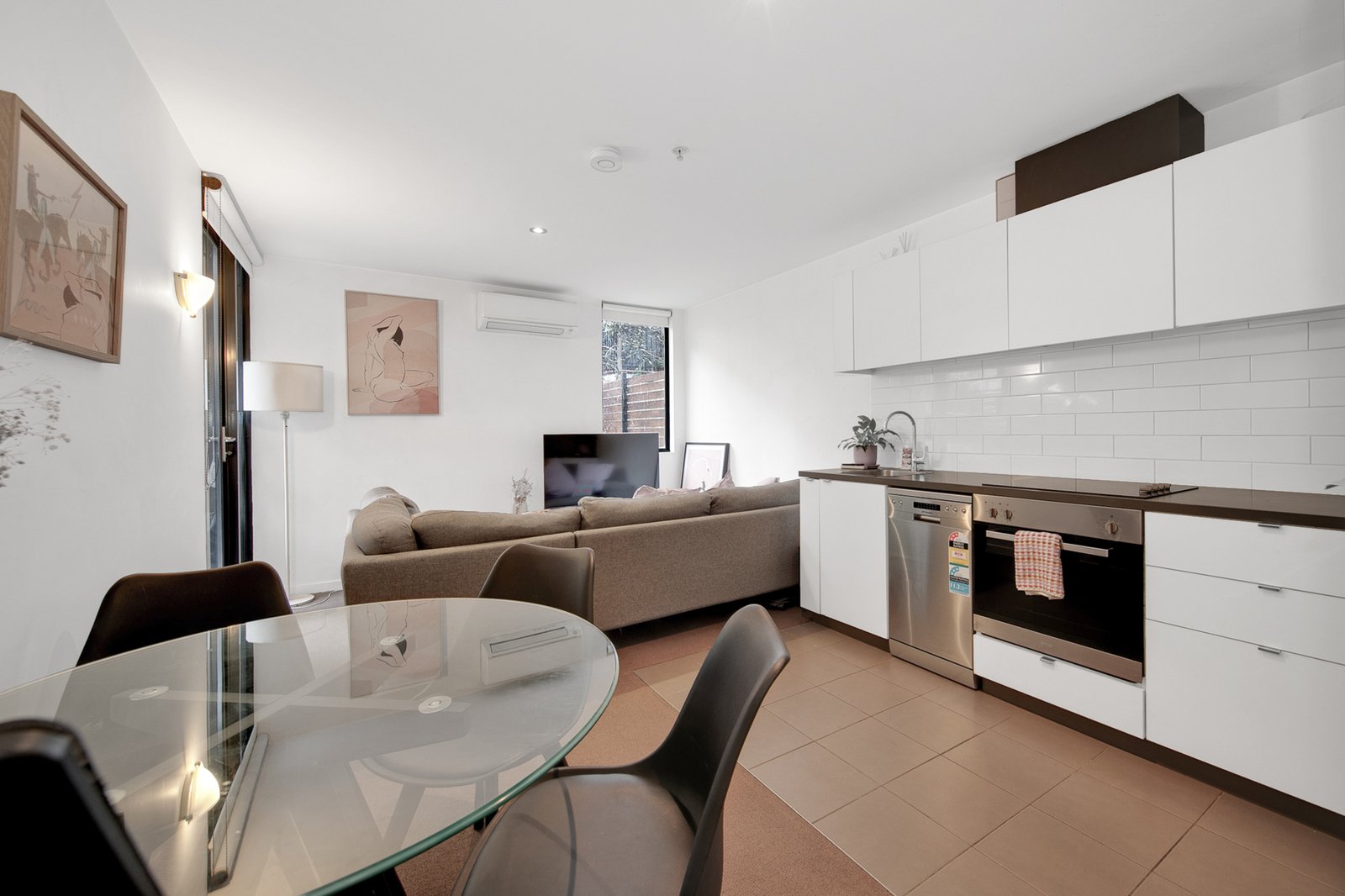 Catering to a lifestyle of superb convenience with city trams at the doorstep and within a short stroll of Windsor’s vibrant café culture, this light-filled ground floor apartment offers modern designer living at its absolute finest. Open kitchen, dining, and living areas seamlessly flow to a generous sun-drenched North-facing private courtyard, while accommodation of one robed bedroom is accompanied by an elegant monochrome ensuite. A European laundry, intercom entry, and a secure basement car space complete this fine package.