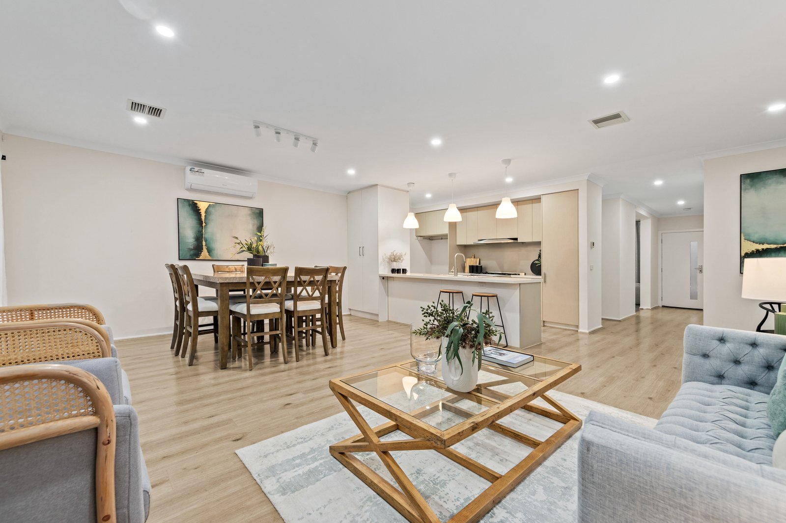 From the moment you step inside, you're greeted by a sunlit living room that sets a warm and inviting tone. The open-plan layout seamlessly connects the kitchen, dining, and family areas, creating the perfect space for entertaining guests or enjoying quiet moments with loved ones.